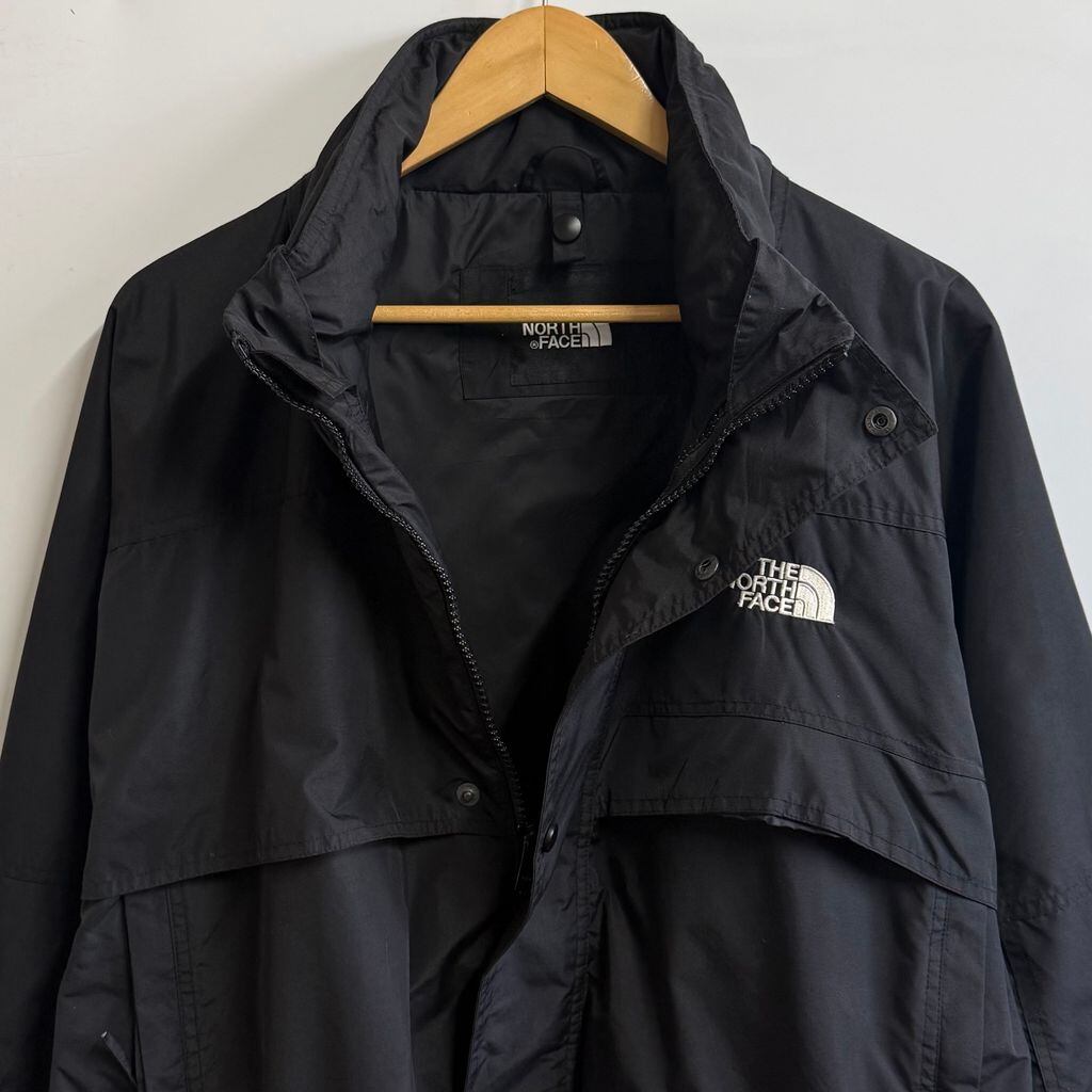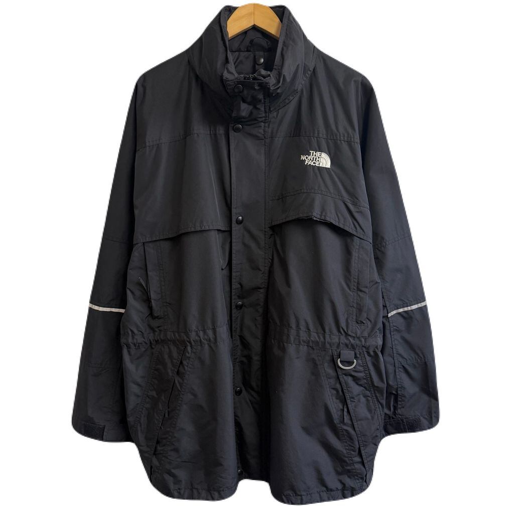 THE NORTH FACE ザノースフェイス アウトドアジャケット フード付き マウンテンパーカー スナップボタン×フルジップ 黒 ブラック XLサイズ No.L606
