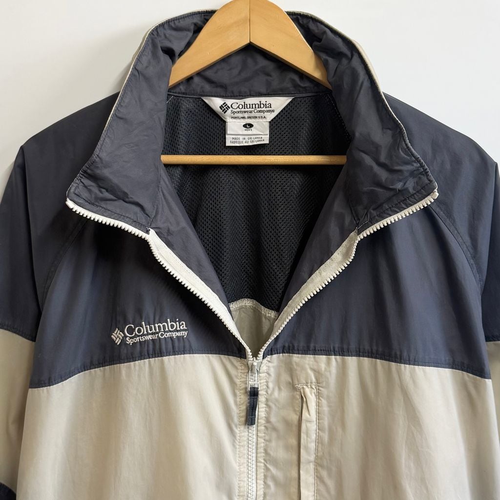 Columbia コロンビア PACKABLE パッカブルジャケット アウトドアジャケット フード付き マウンテンパーカー フルジップ ポケット付き グレー×オフホワイト Lサイズ No.L609