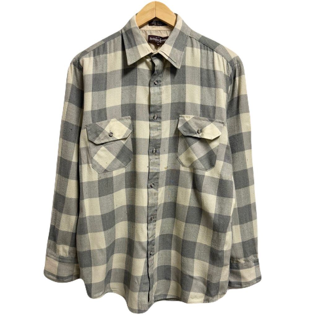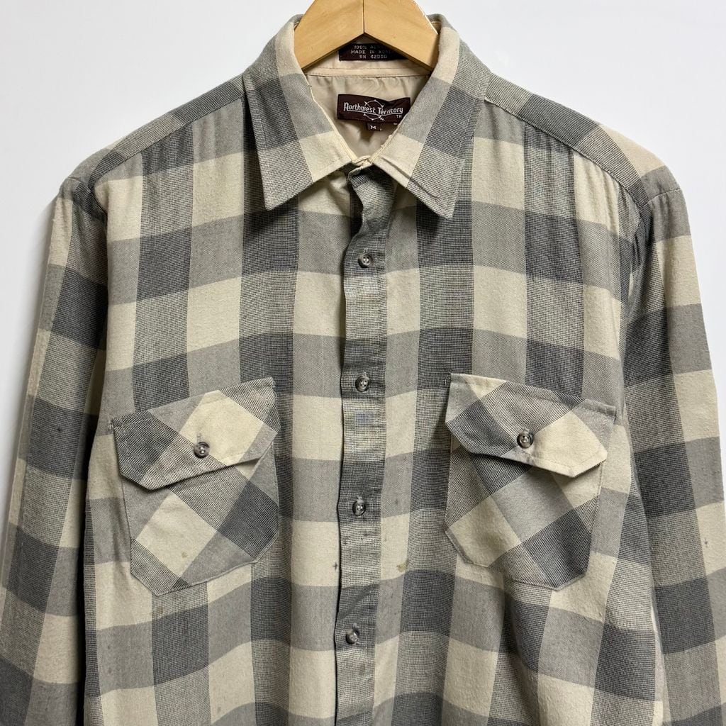 Northwest Territory チェック柄 ポケット付き 長袖シャツ ベージュ×グレー Mサイズ No.L621