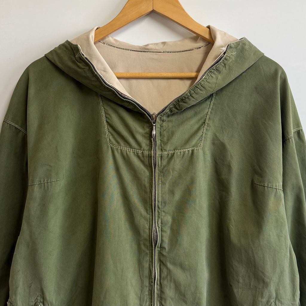(リバーシブル) 60's〜70's vintage ビンテージ Sporthaus Schuster フーデッドジャケット ミリタリージャケット マウンテンパーカー フルジップ ポケット付き カーキ×オフホワイト サイズ48 No.L625