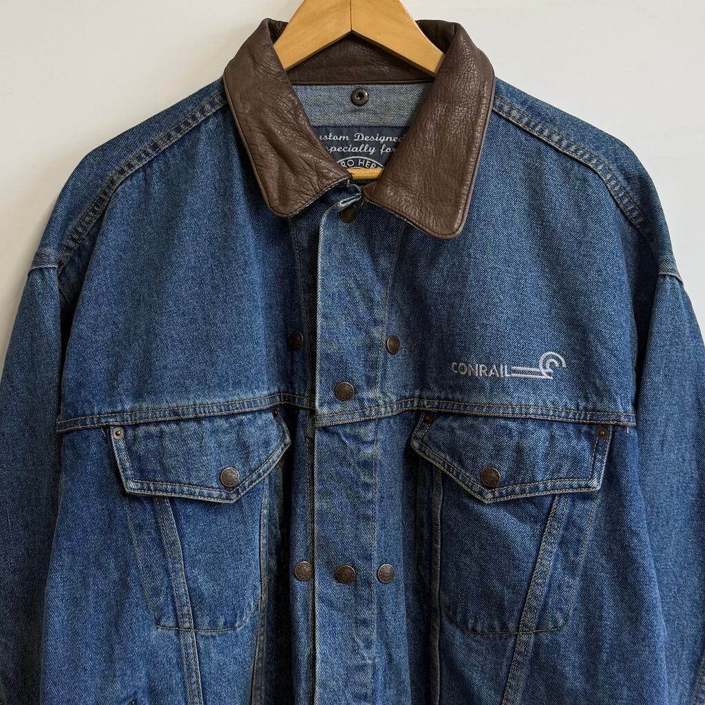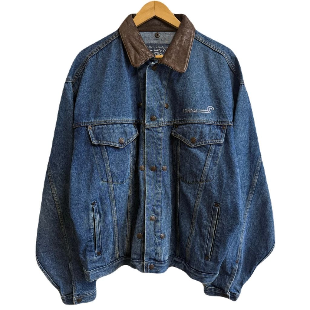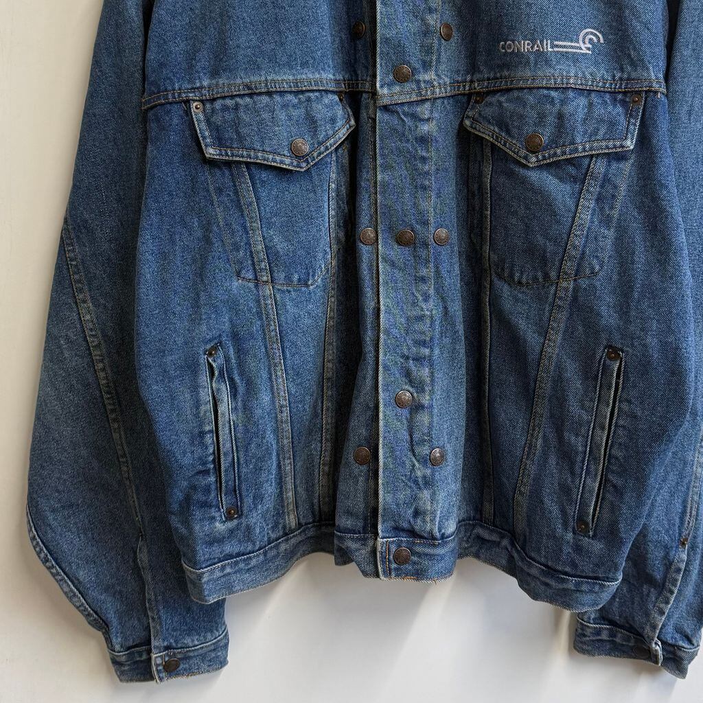 CONRAIL コンレール デニムジャケット Gジャン 切り替えデザイン スナップボタン 青×茶 XLTサイズ No.L633