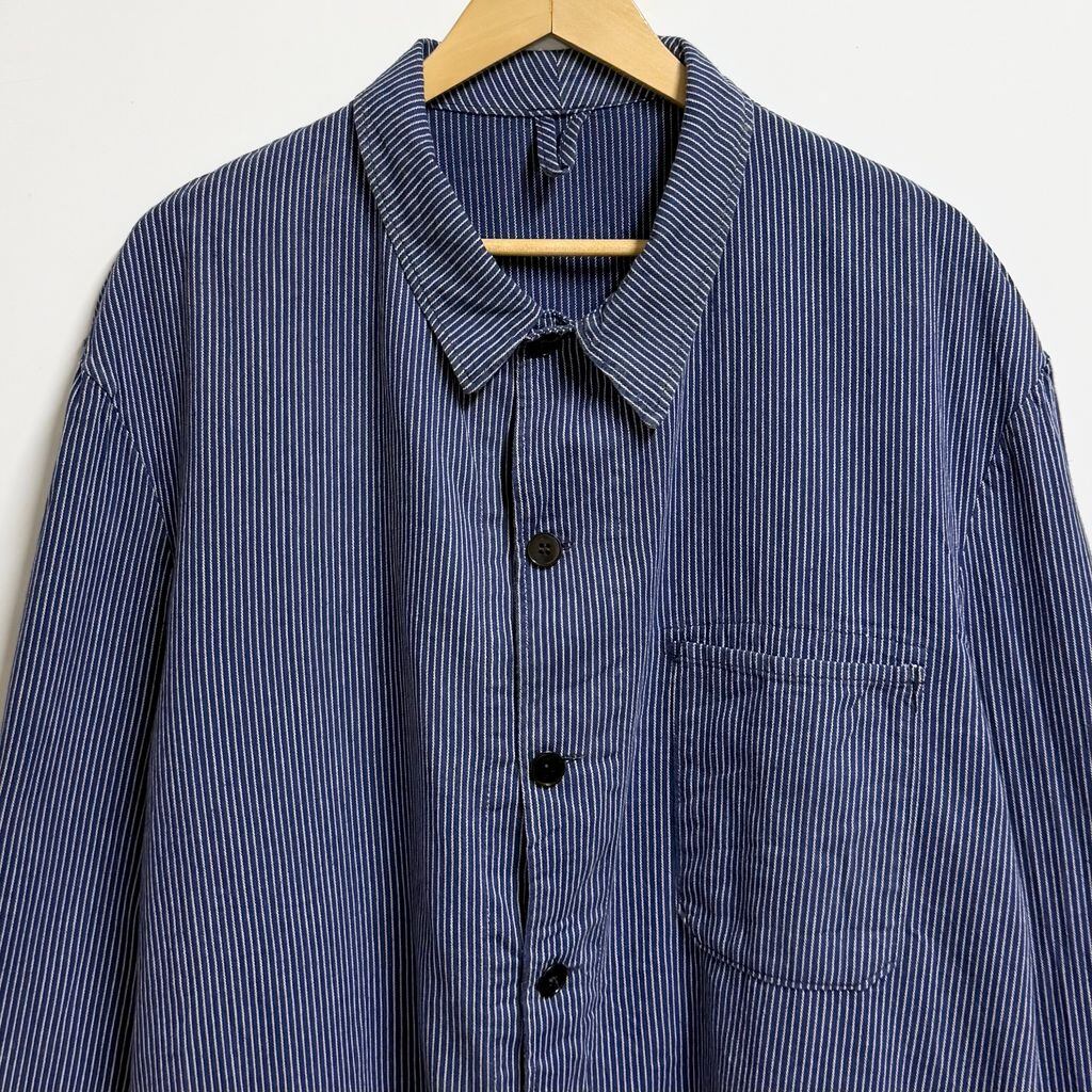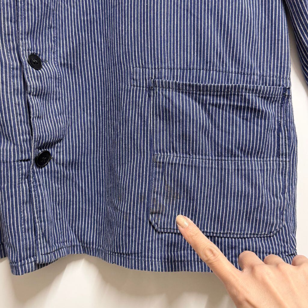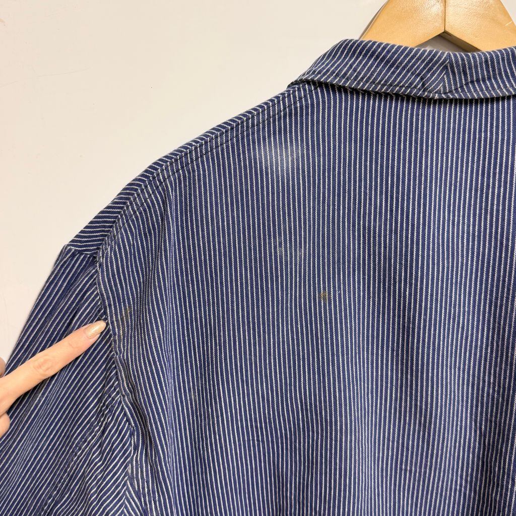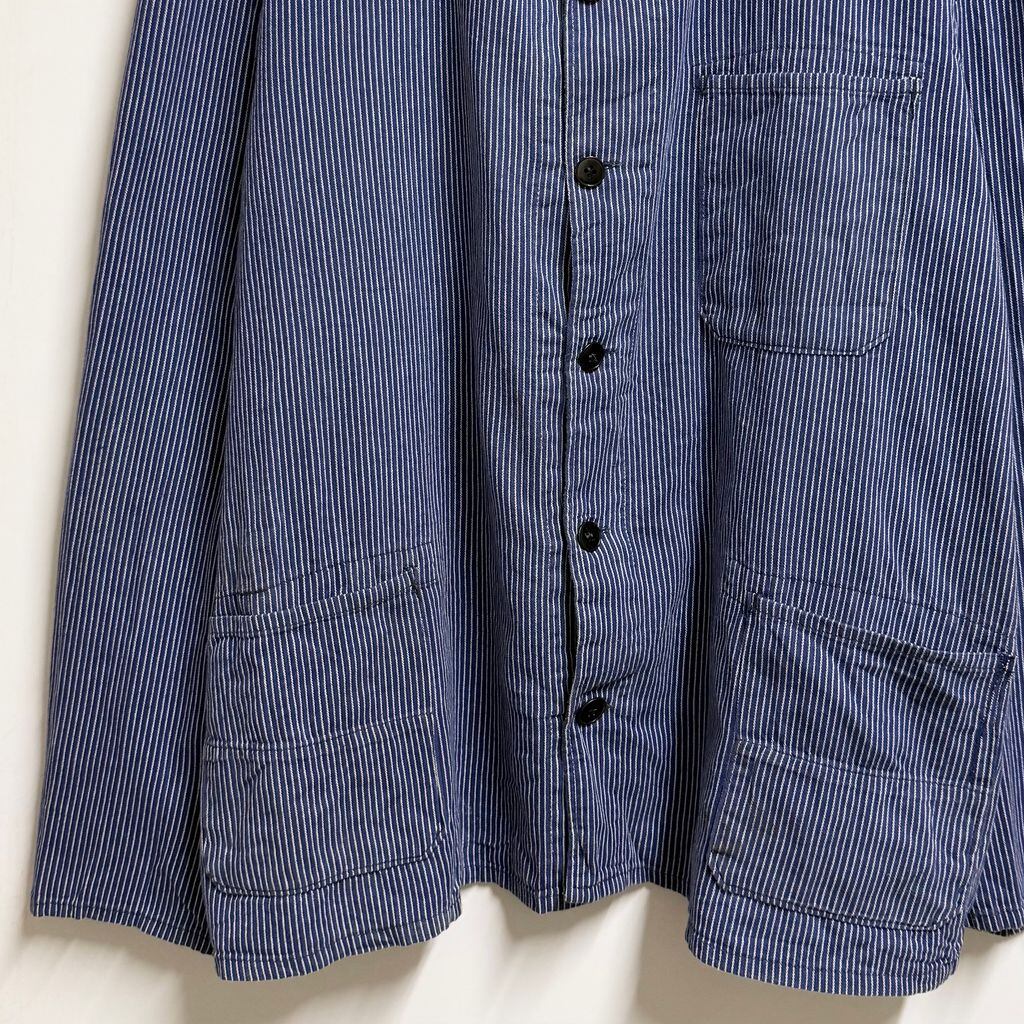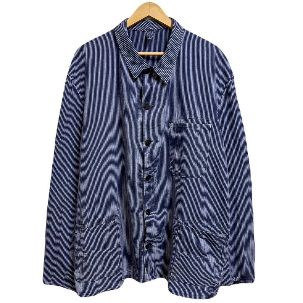 ユーロワークジャケット フレンチワークジャケット ストライプ フロントボタン 青×白 No.L635