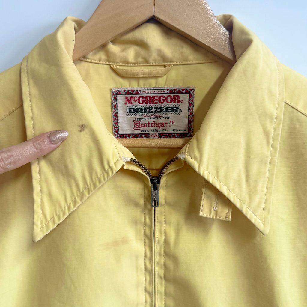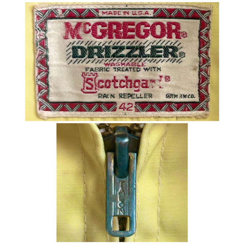 70's ビンテージ vintage USA製 McGREGOR マックレガー DRIZZLER ドリズラージャケット タロンジップ スイングトップ フルジップ ポケット付き 黄色 イエロー サイズ42 No.L651