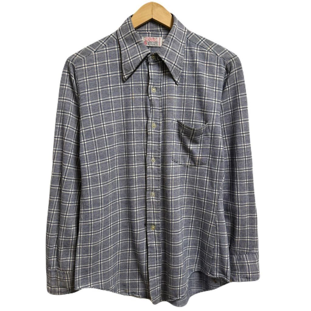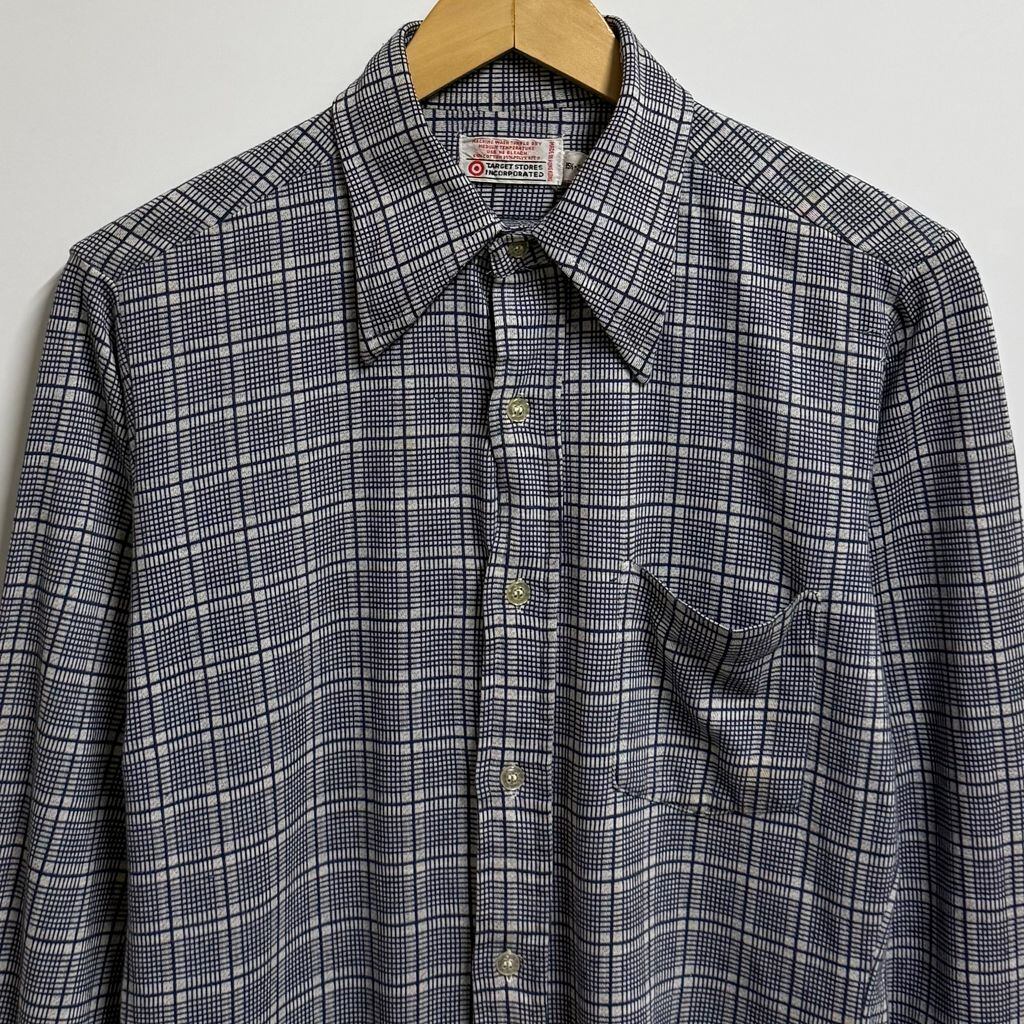 TARGET STORES INCORPORATED チェック柄 ポケット付き 長袖シャツ 白×紺 No.L668
