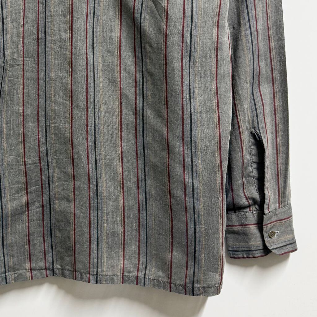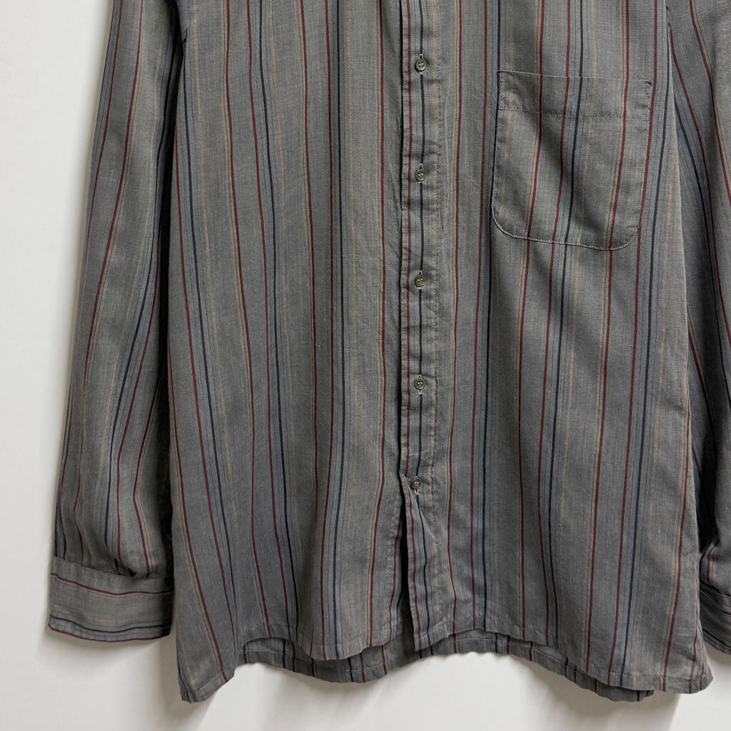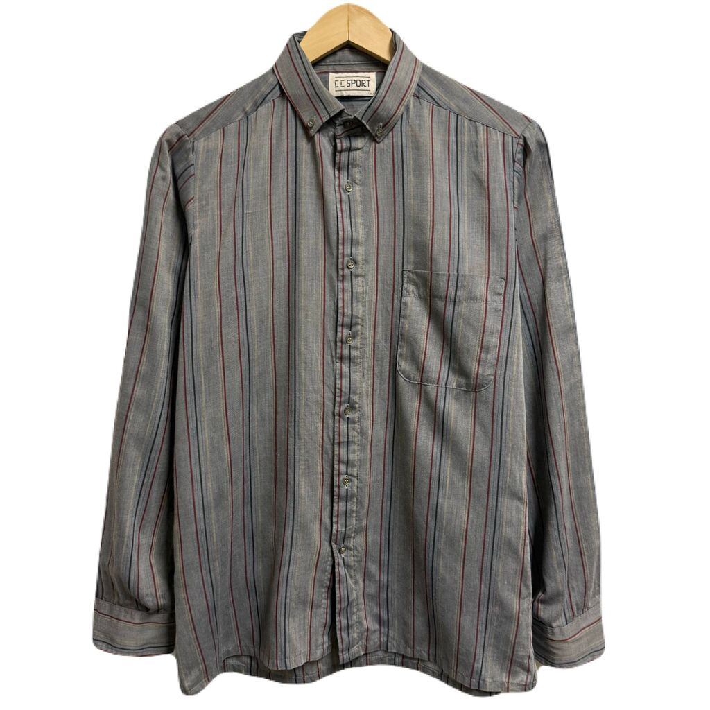 USA製 IC SPORT ボタンダウンシャツ ストライプ ポケット付き 長袖シャツ グレー×多色 Mサイズ No.L669