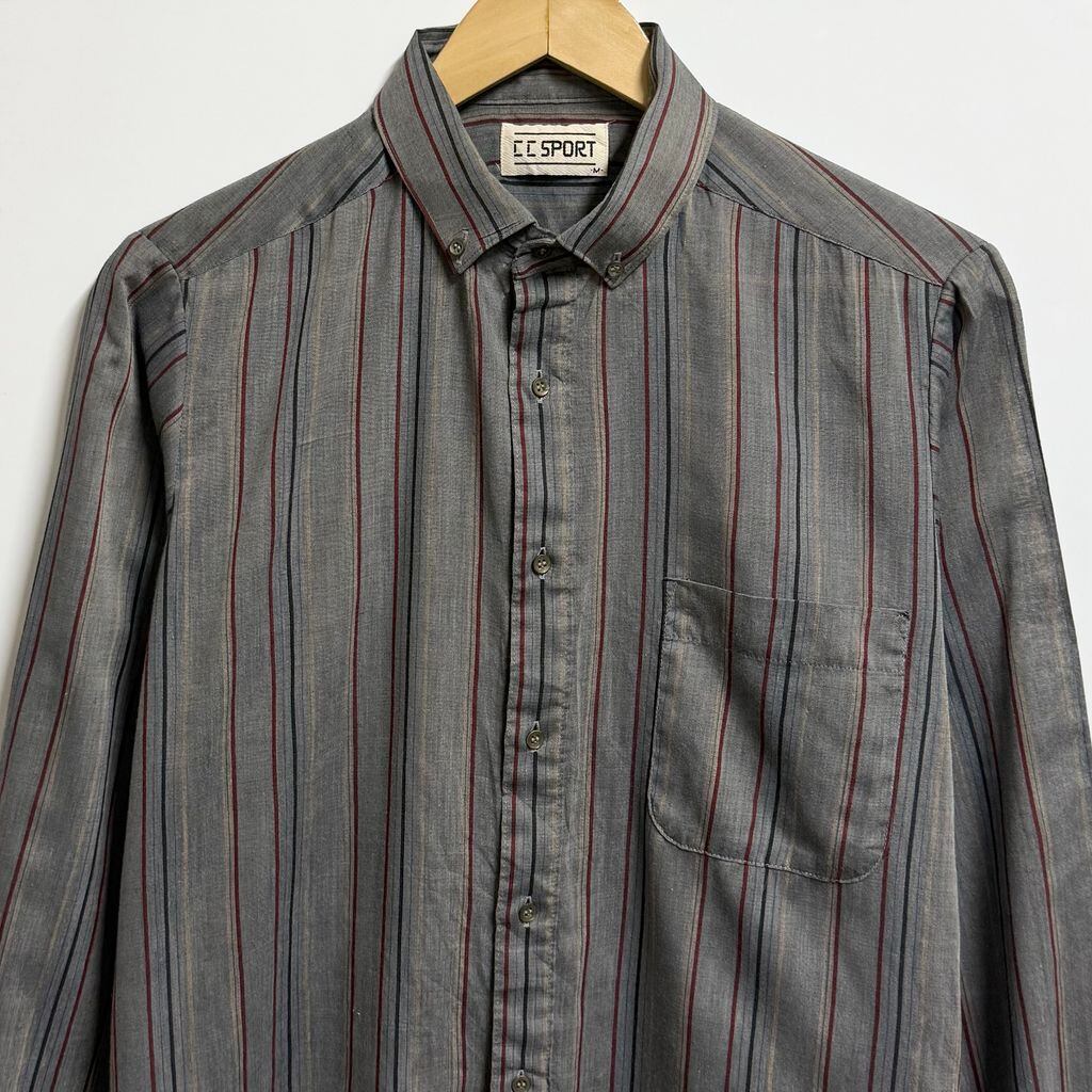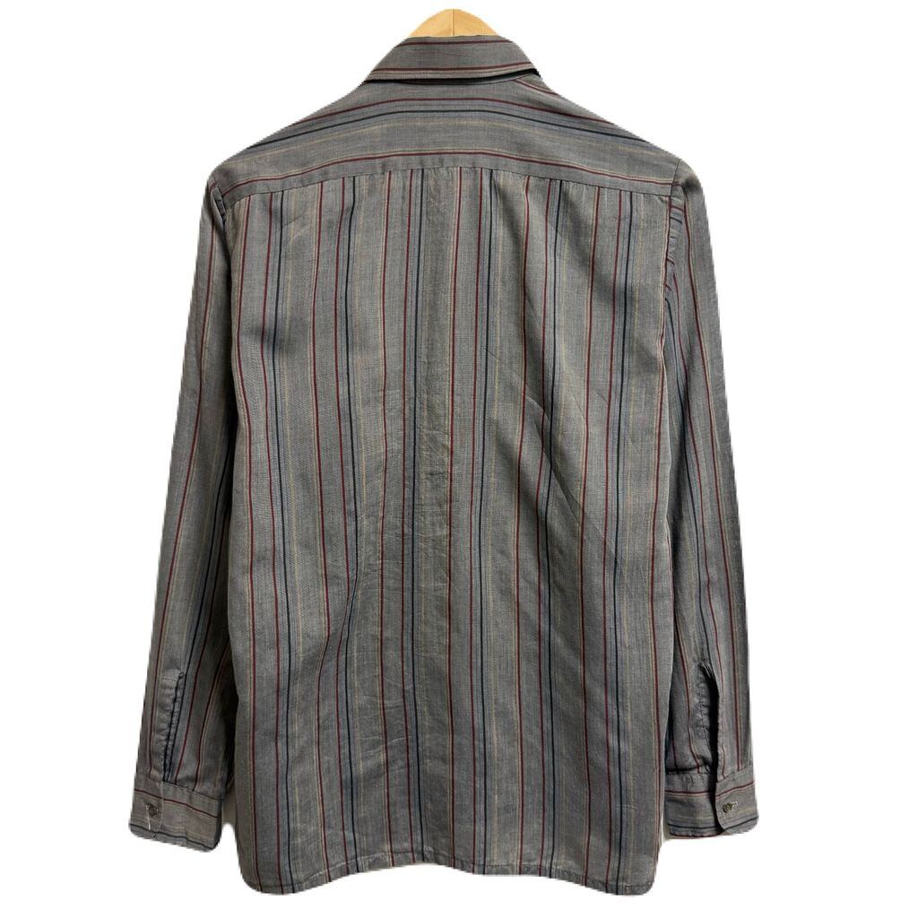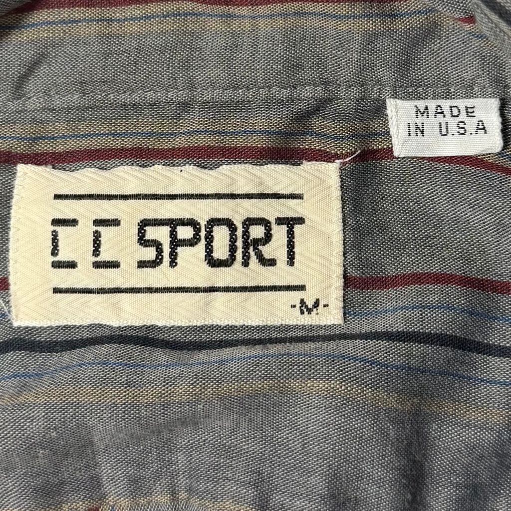 USA製 IC SPORT ボタンダウンシャツ ストライプ ポケット付き 長袖シャツ グレー×多色 Mサイズ No.L669