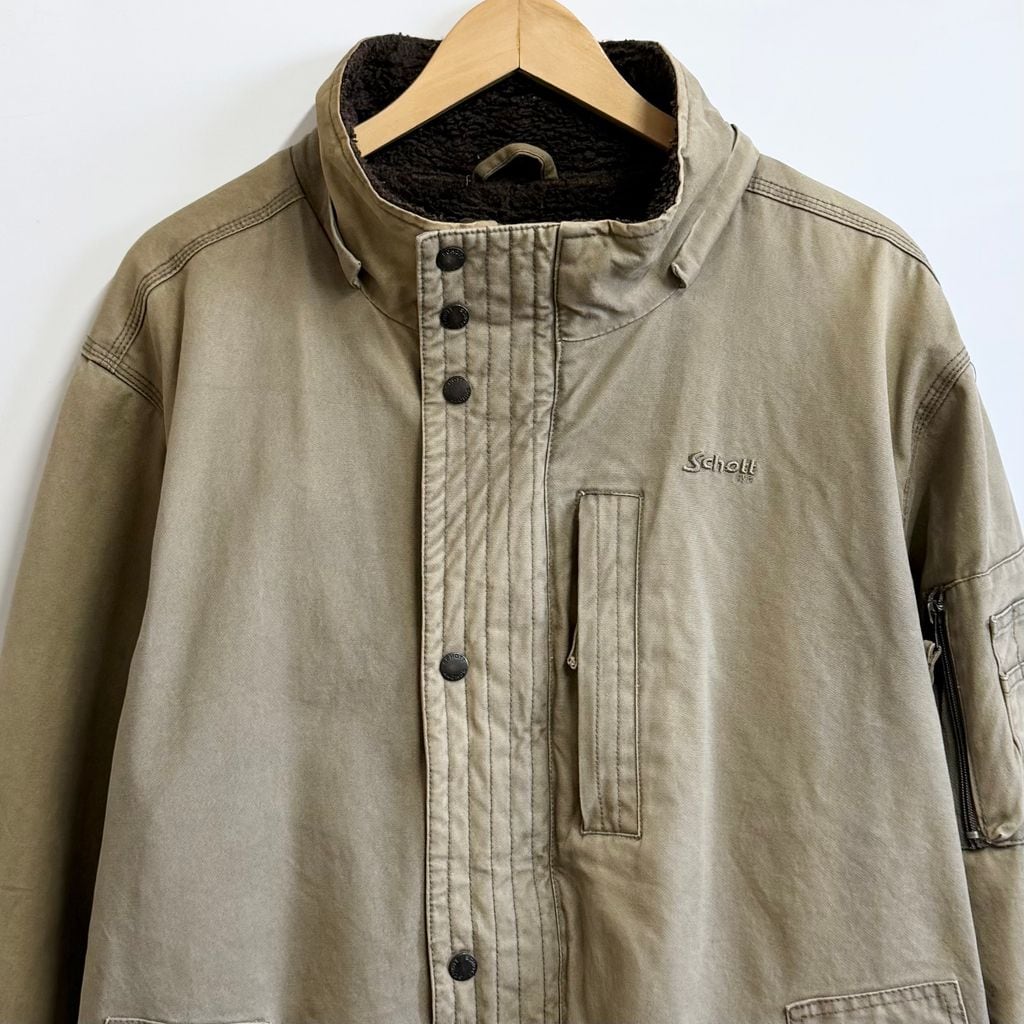 Schott ショット アウトドアジャケット ミリタリージャケット 裏ボア ボアジャケット スナップボタン×フルジップ ベージュ Lサイズ No.L678