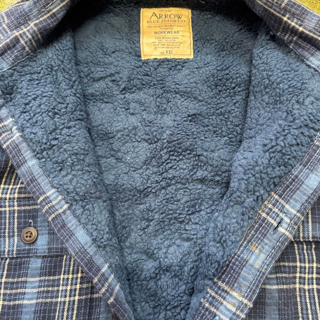 ARROW BLUE JEANS CO Workwear チェック柄 シャツジャケット 裏地ボア 紺×青 XXLサイズ No.E987