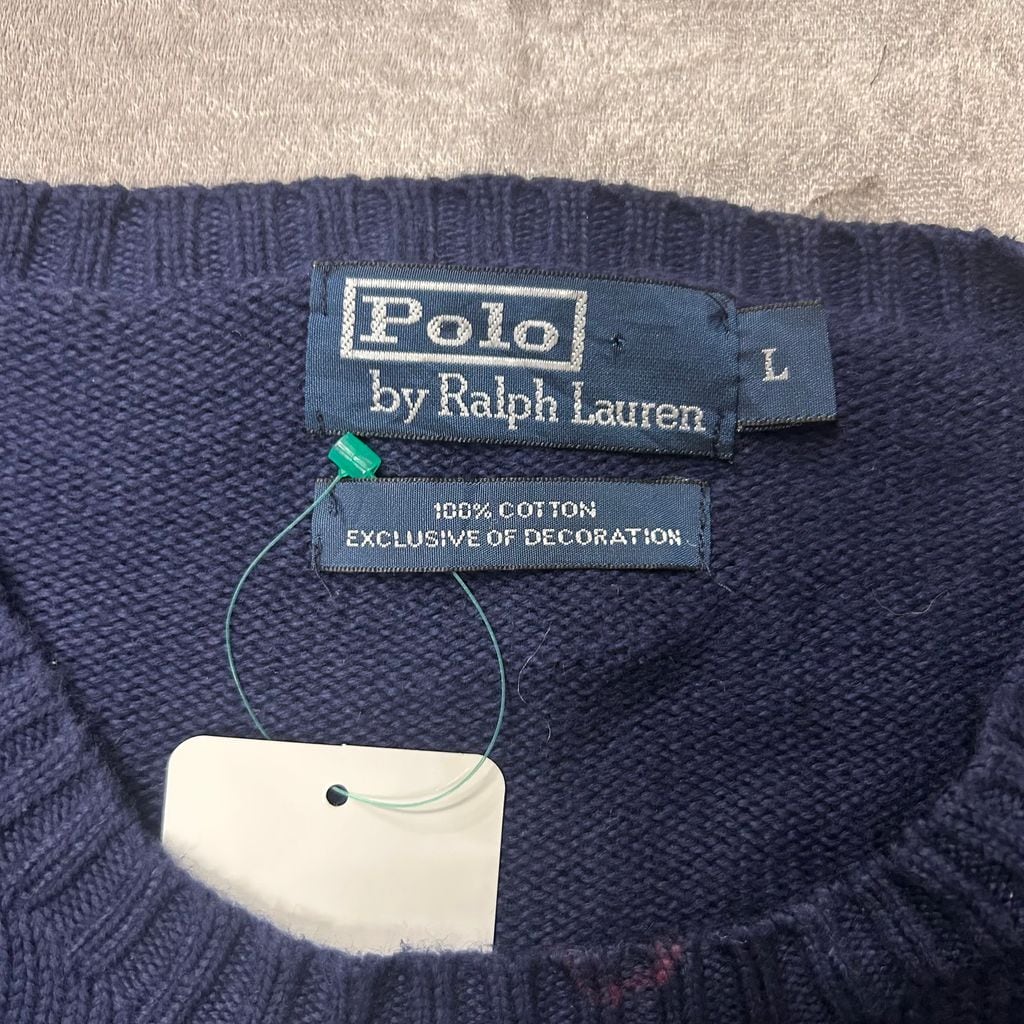 Polo by Ralph Lauren 赤ポニー コットンニット ブルー SIZE L No.T177