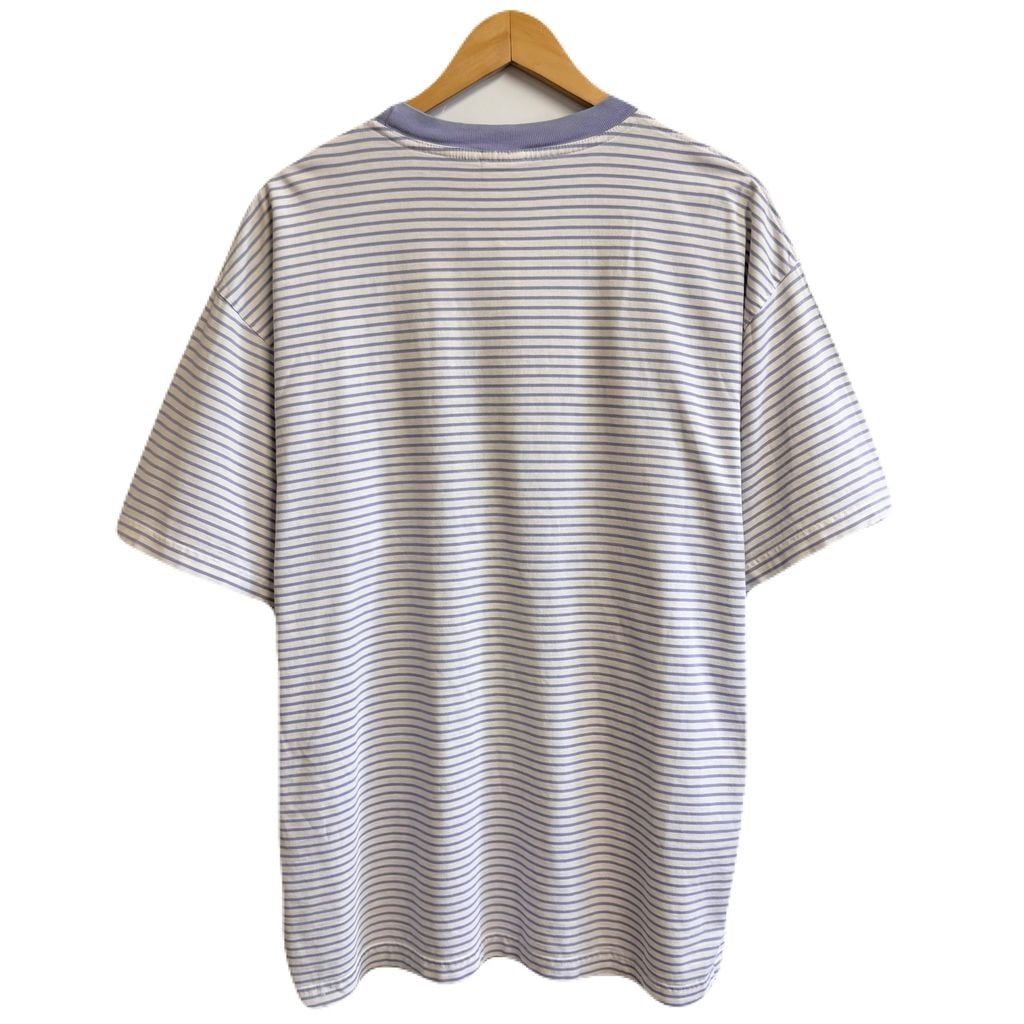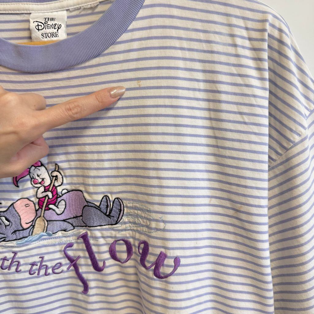 THE THE Disney STORE ディズニー イーヨー ピグレット 刺繍 ボーダー 半袖Tシャツ 白×ラベンダー 薄紫 No.L691