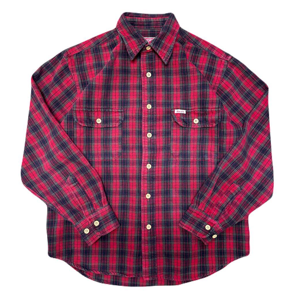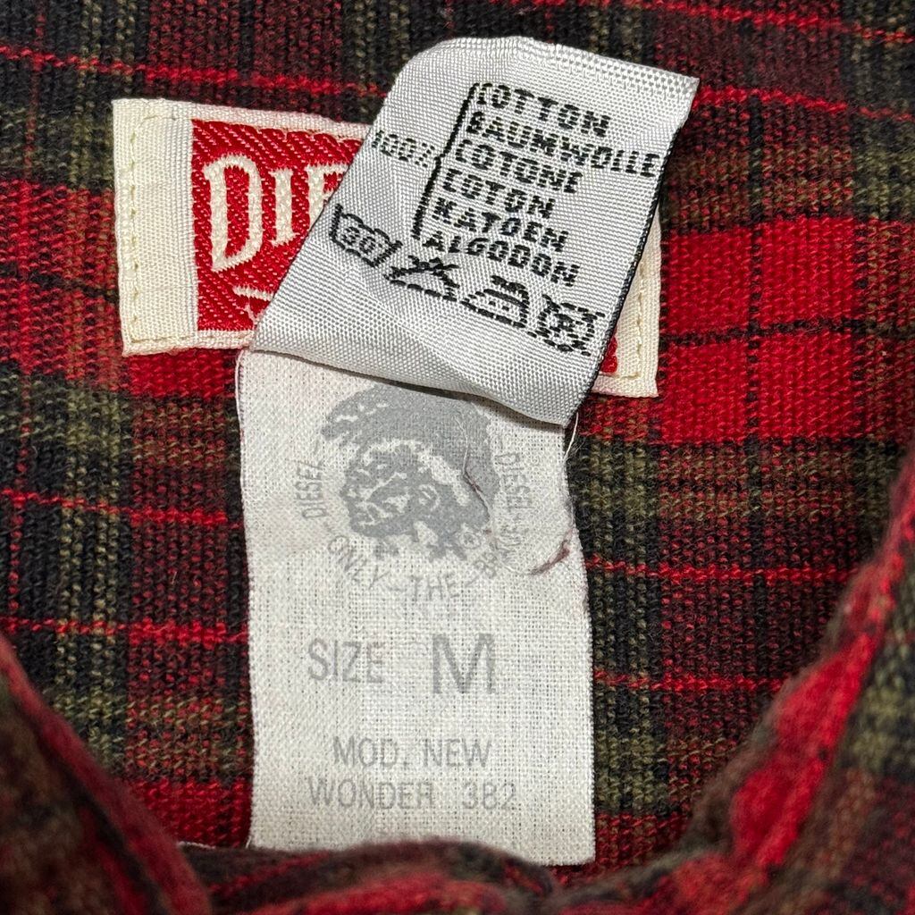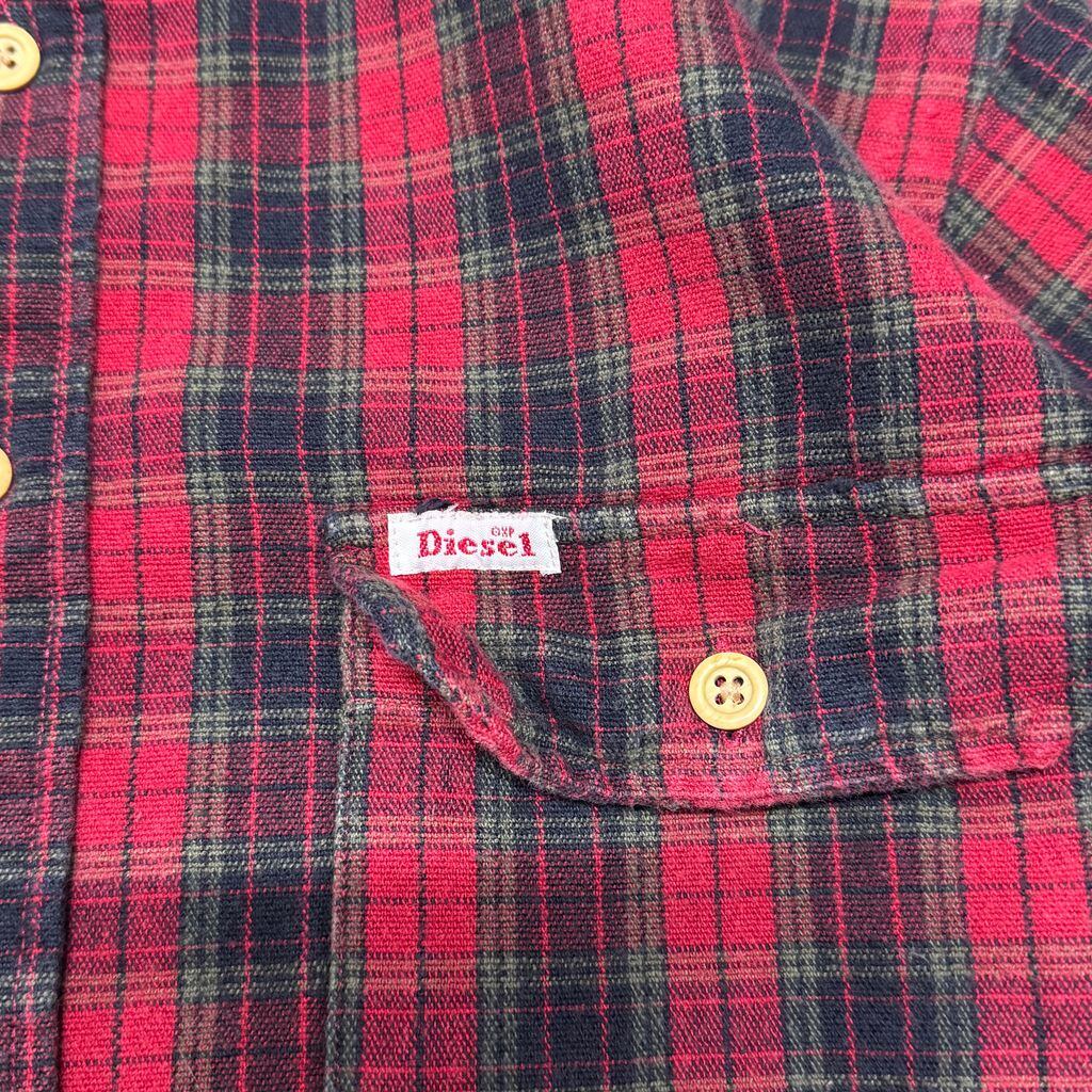 80~90s DIESEL ディーゼル チェック柄 ポケット付き 長袖シャツ 赤×黒×緑 Mサイズ No.E996