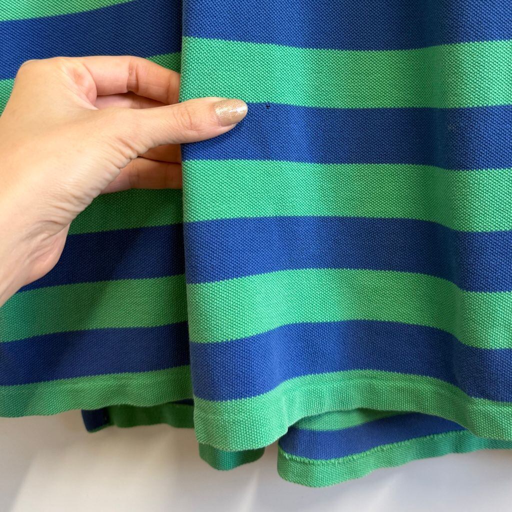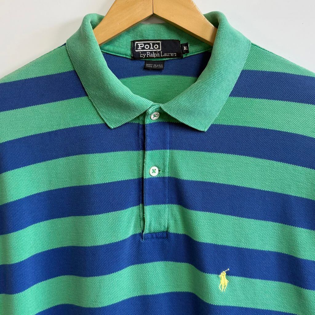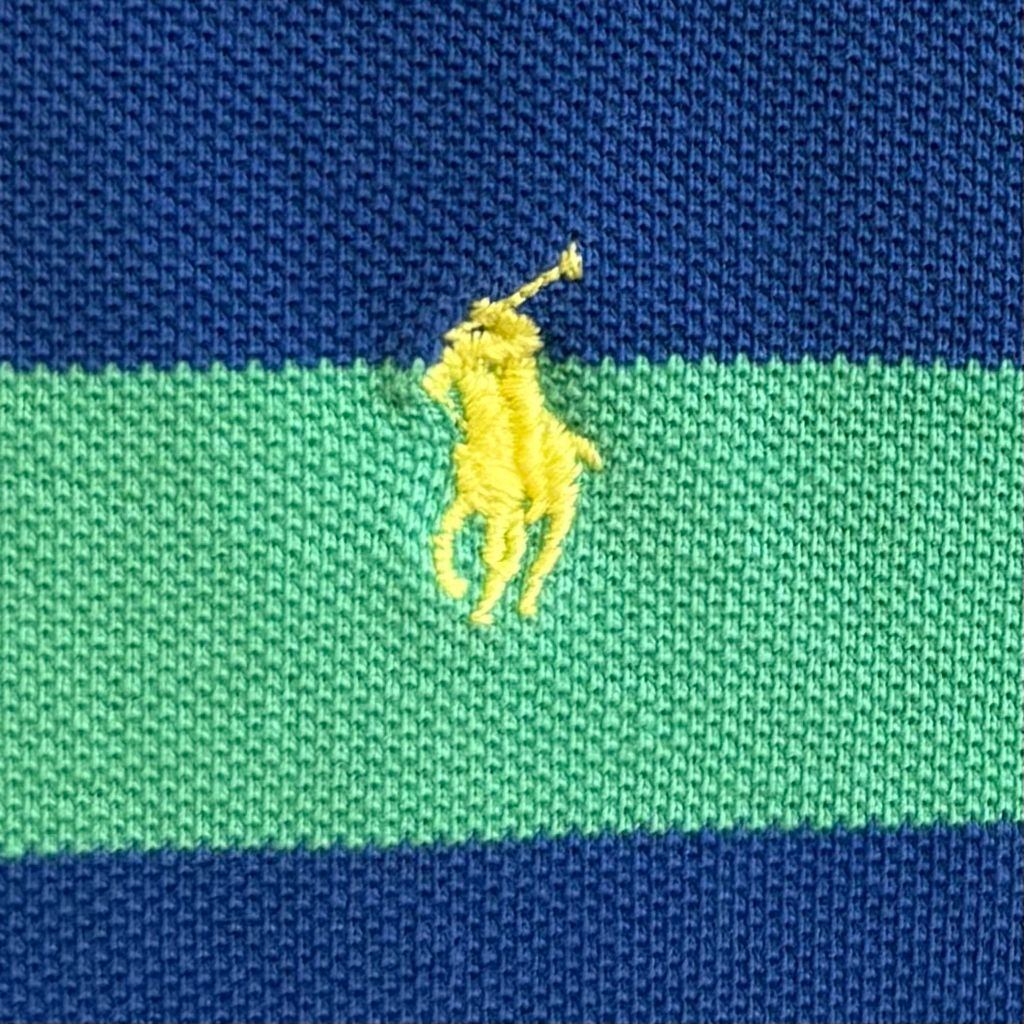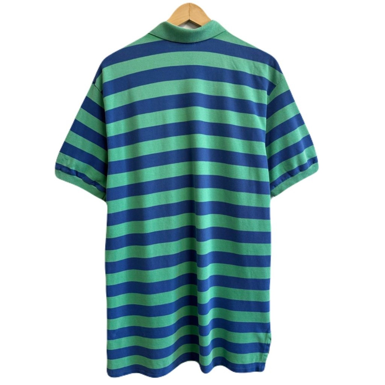 USA製 Polo Ralph Lauren ポロ ラルフローレン ポロシャツ 半袖 ボーダー ワンポイントロゴ 刺繍 グリーン×ブルー XLサイズ No.L715