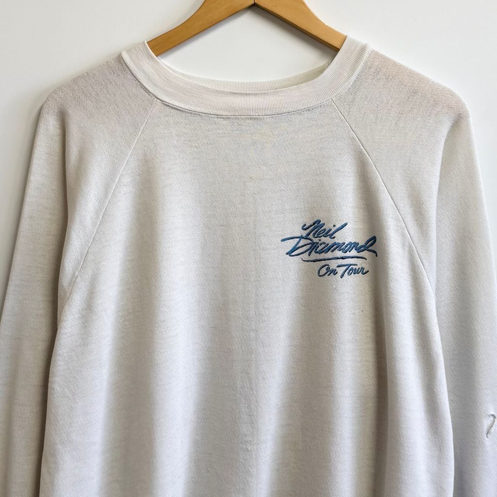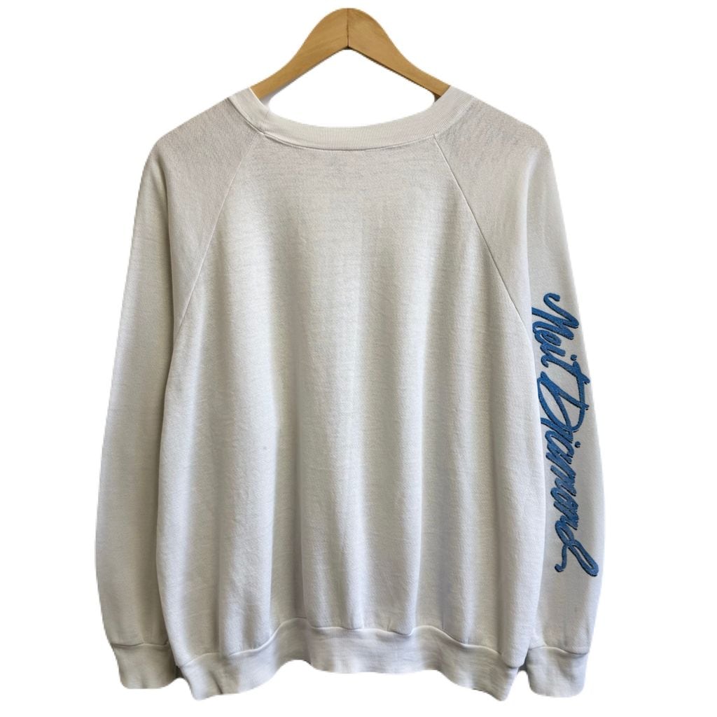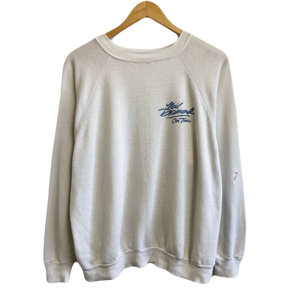 ニール・ダイヤモンド ツアー スウェットシャツ 2面プリント ボロ ラグランスウェット 白 No.L716