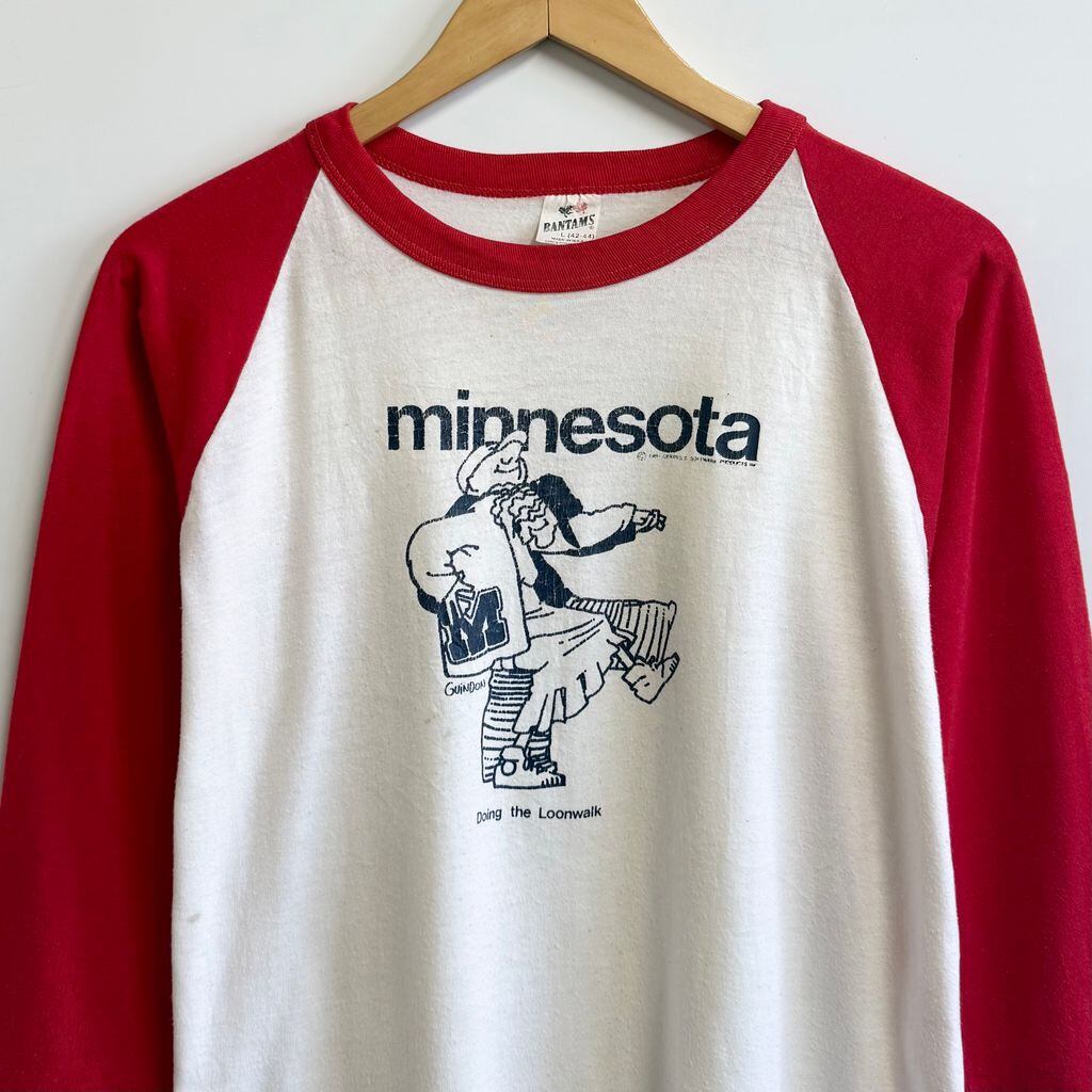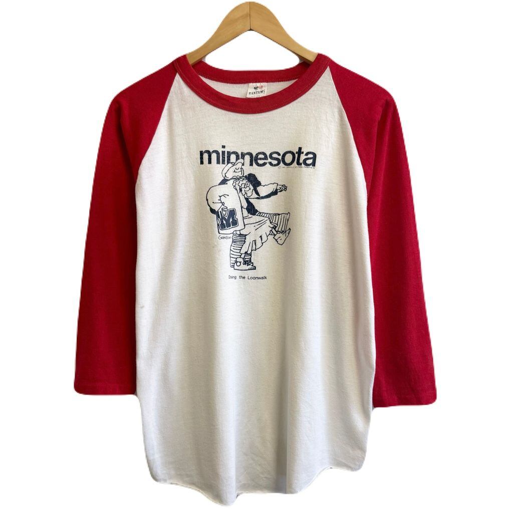 USA製 BANTAMS ミネソタ Minnesota ラグランTシャツ シングルステッチ 白×赤 Lサイズ No.L717