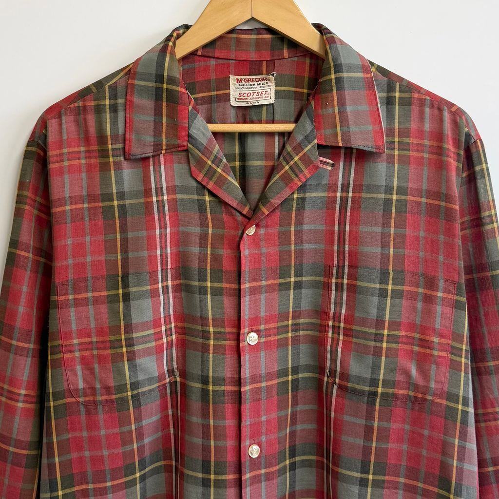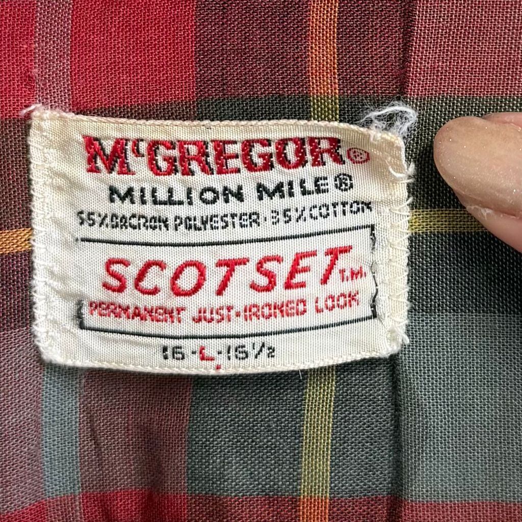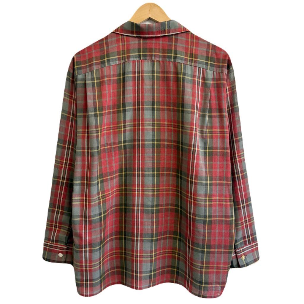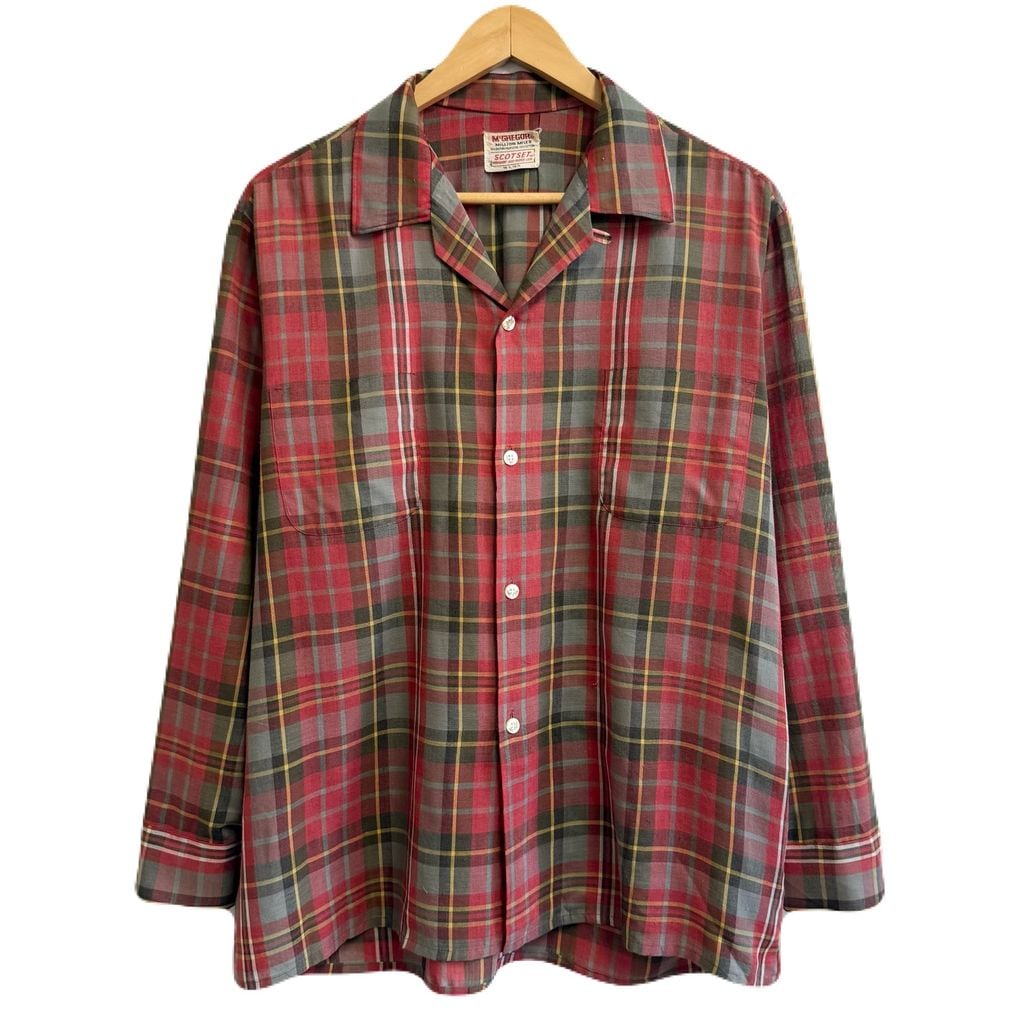 McGREGOR マックレガー SCOTSET オープンカラー 開襟シャツ チェック柄 ポケット付き 長袖シャツ 赤系×グレー×ブラウン×多色 Lサイズ No.L719