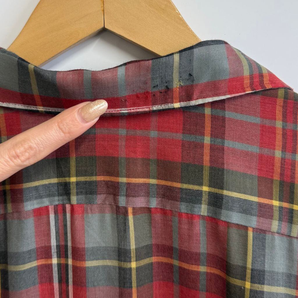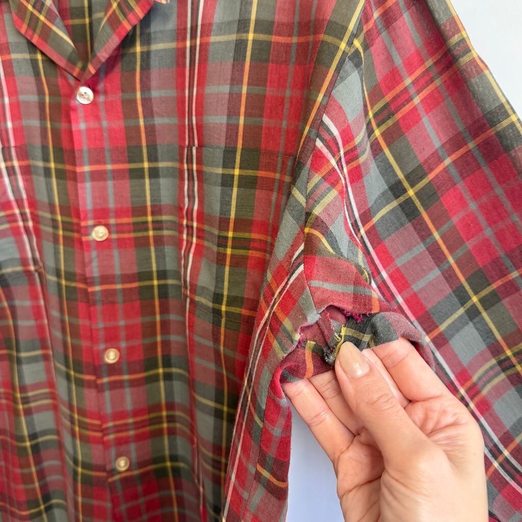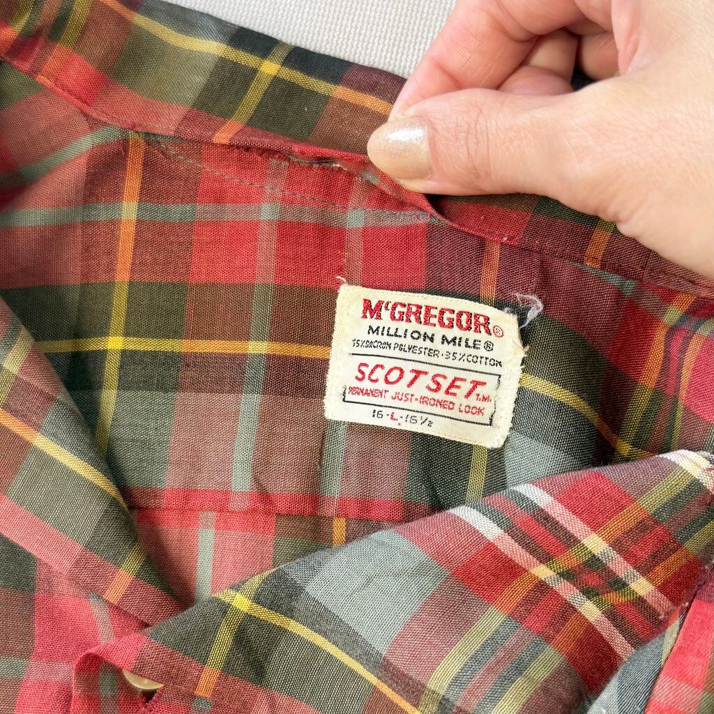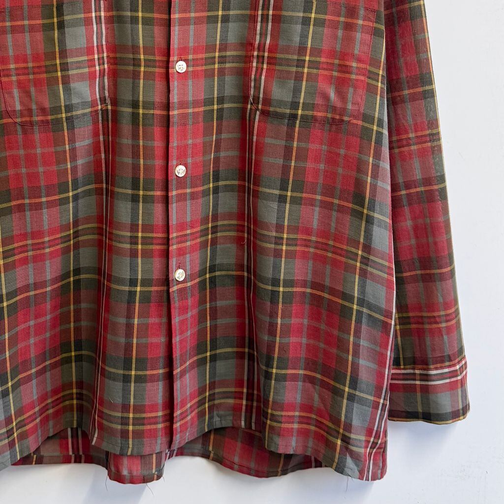 McGREGOR マックレガー SCOTSET オープンカラー 開襟シャツ チェック柄 ポケット付き 長袖シャツ 赤系×グレー×ブラウン×多色 Lサイズ No.L719