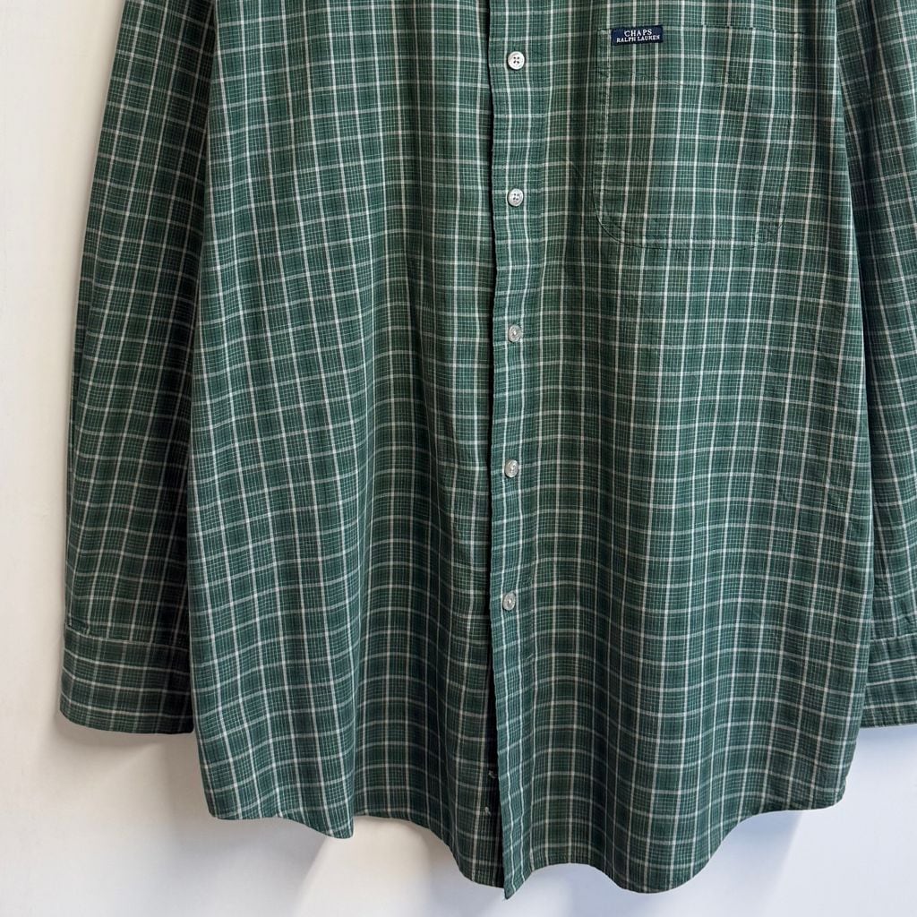 CHAPS チャップス RALPH LAUREN ラルフローレン ボタンダウンシャツ チェック柄 ポケット付き 長袖シャツ 緑×白×黒 L/Gサイズ No.L723