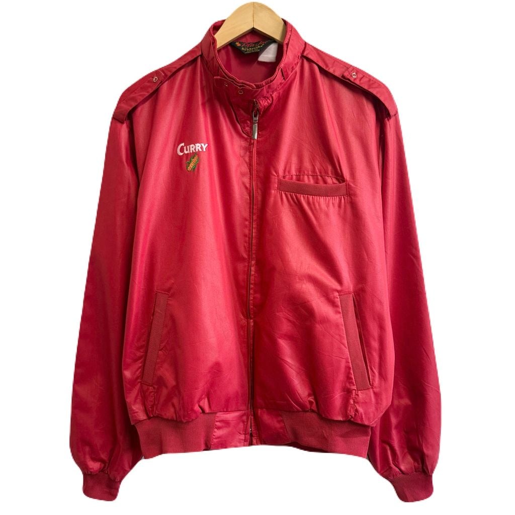 USA製 Pla-Jac ナイロンジャケット レーシングジャケット CURRY とうもろこし 刺繍 フルジップ ポケット付き 赤 Lサイズ No.L741
