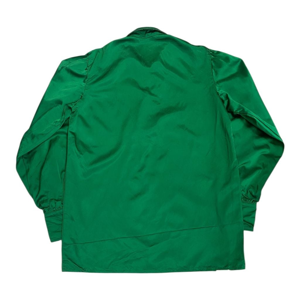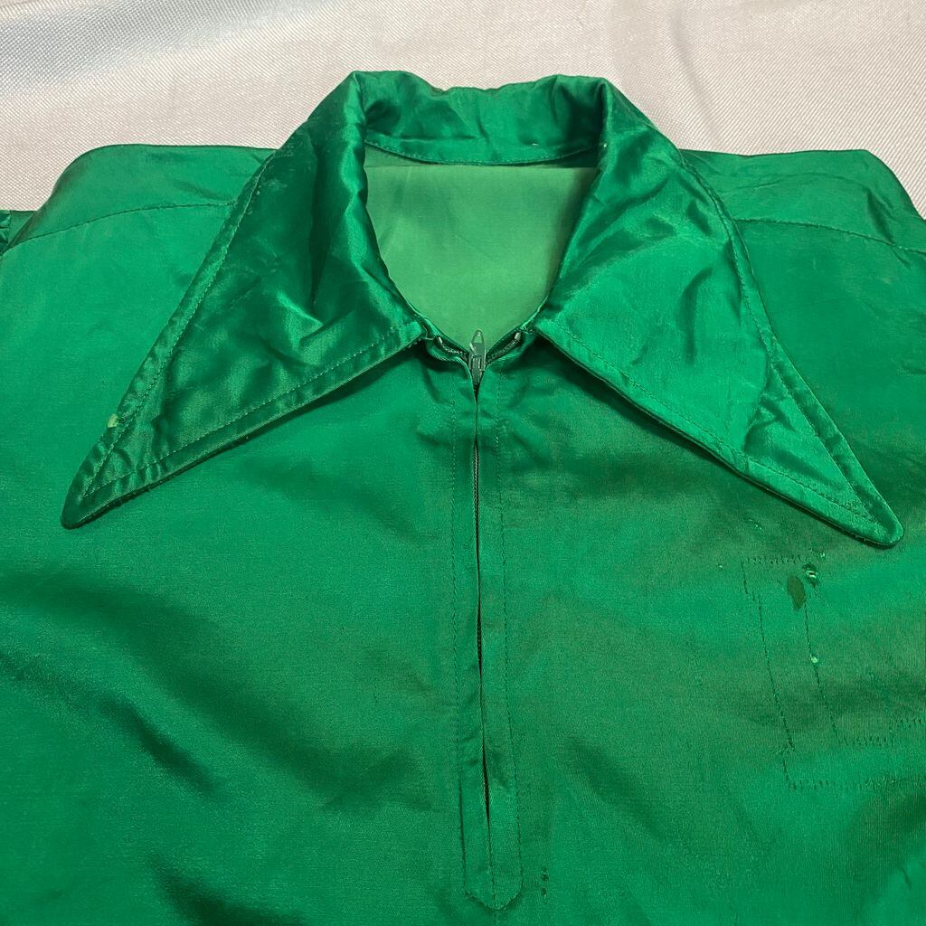 70s サテン ハーフジップ プルオーバーシャツ デカ襟 コスチューム系 緑 No.S037