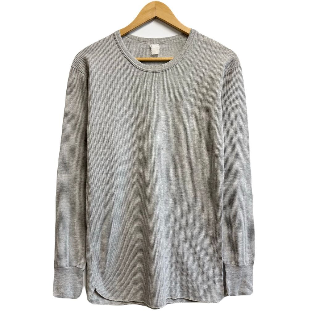 サーマルロンT ワッフル地 クルーネック 無地 ライトグレー No.L748
