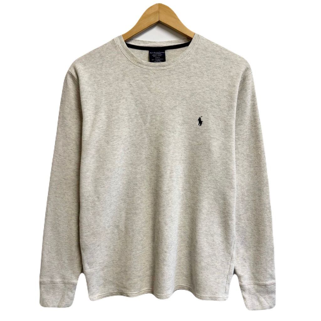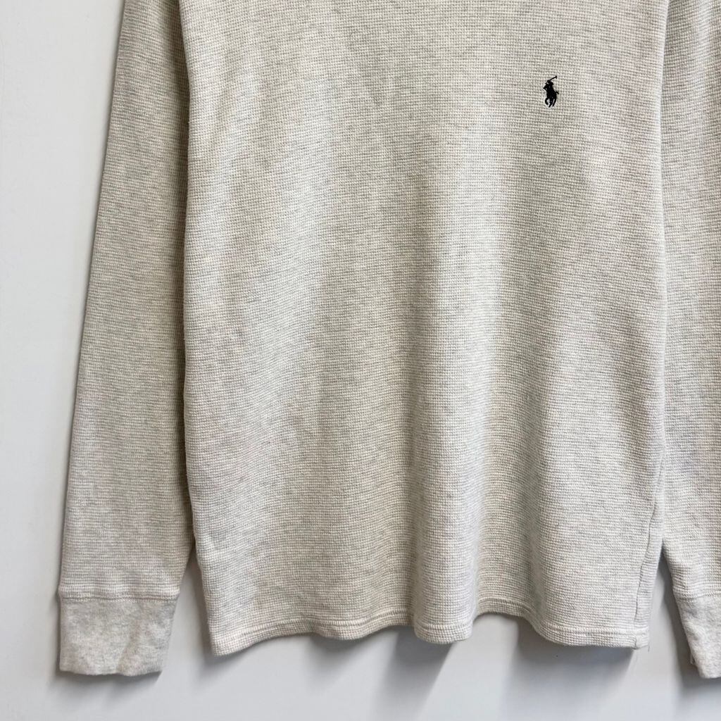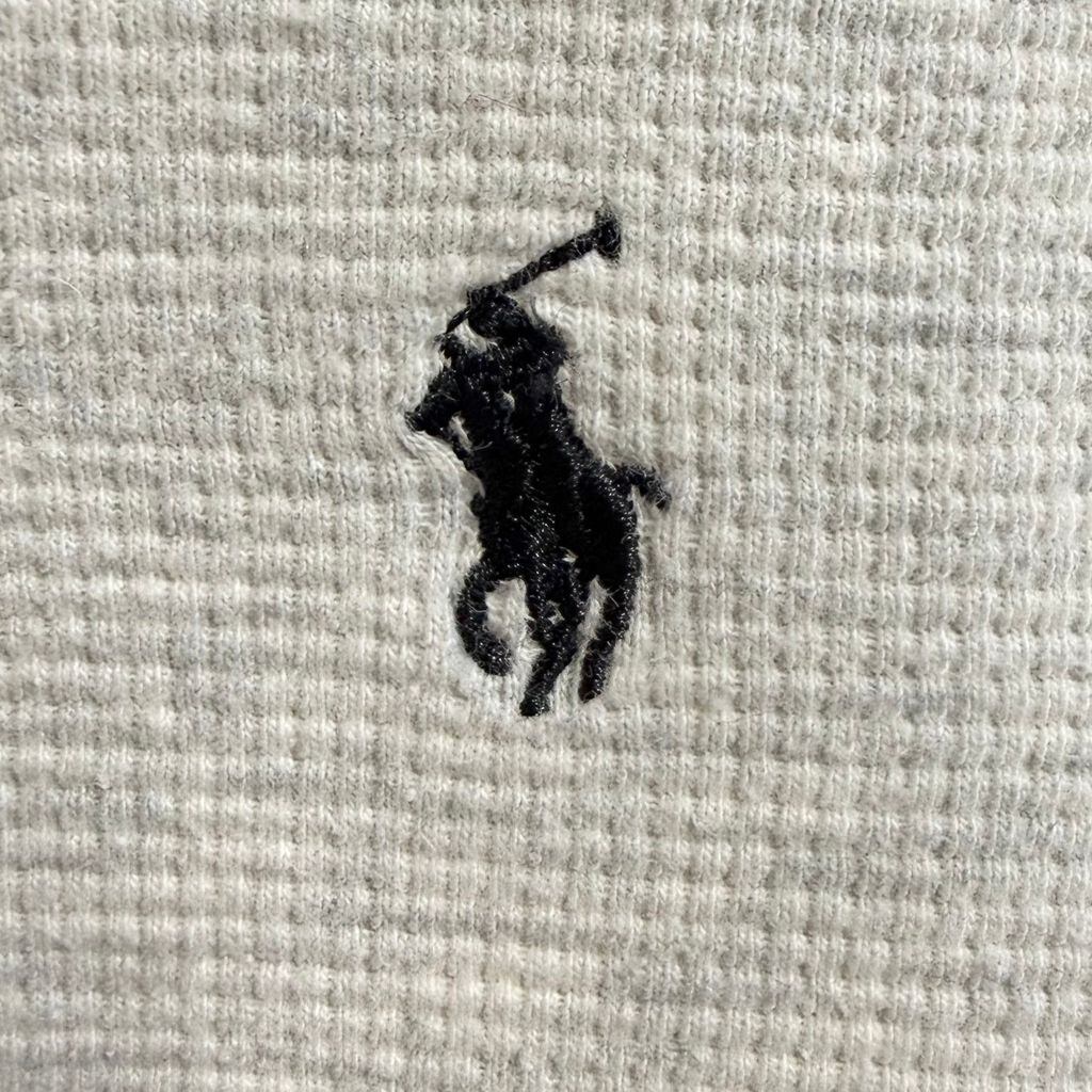 POLO RALPH LAUREN ポロ ラルフローレン サーマルロンT ワッフル地 ワンポイントロゴ 刺繍 ライトグレー Mサイズ No.L749