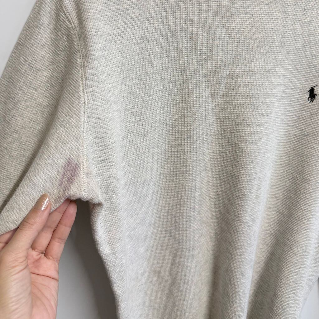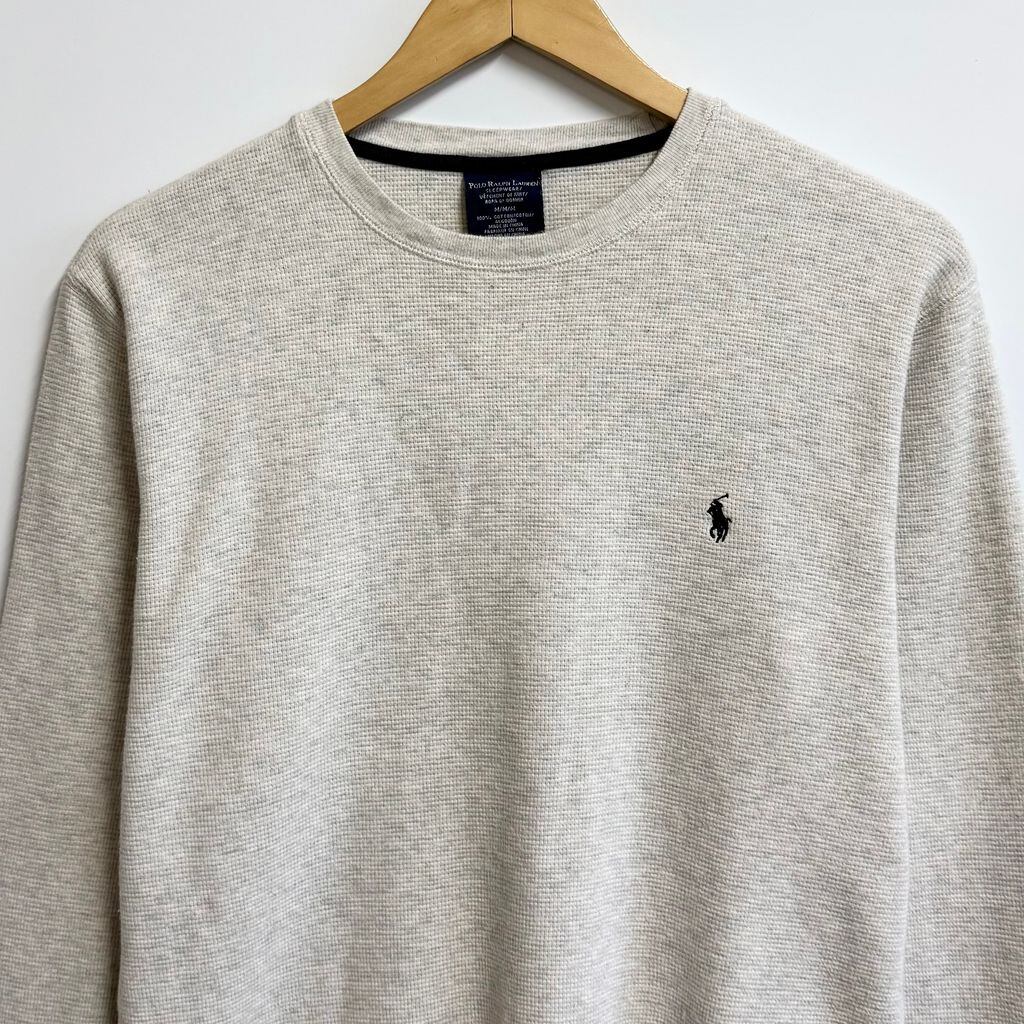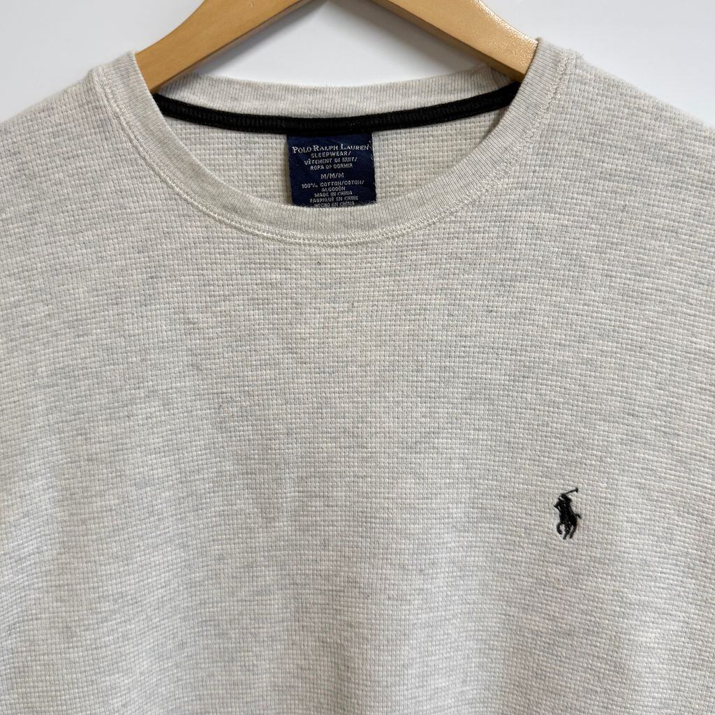POLO RALPH LAUREN ポロ ラルフローレン サーマルロンT ワッフル地 ワンポイントロゴ 刺繍 ライトグレー Mサイズ No.L749