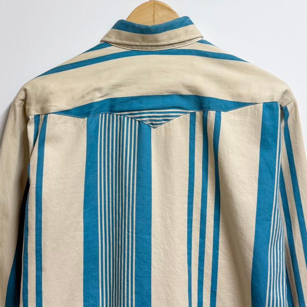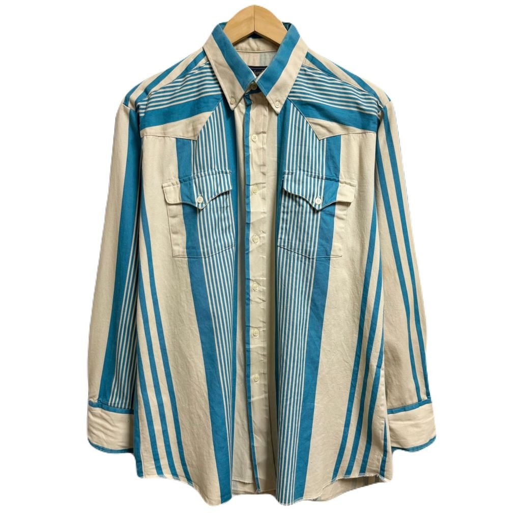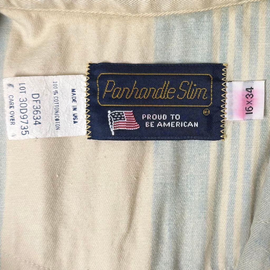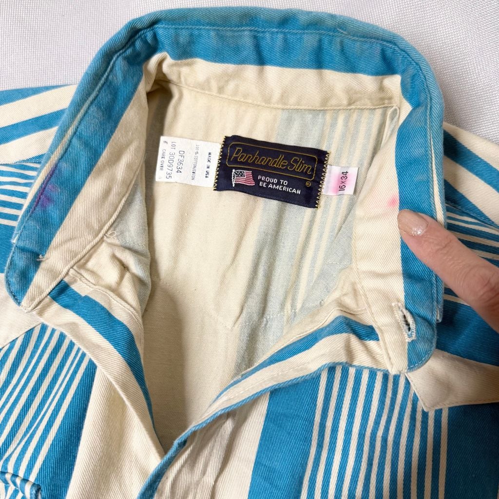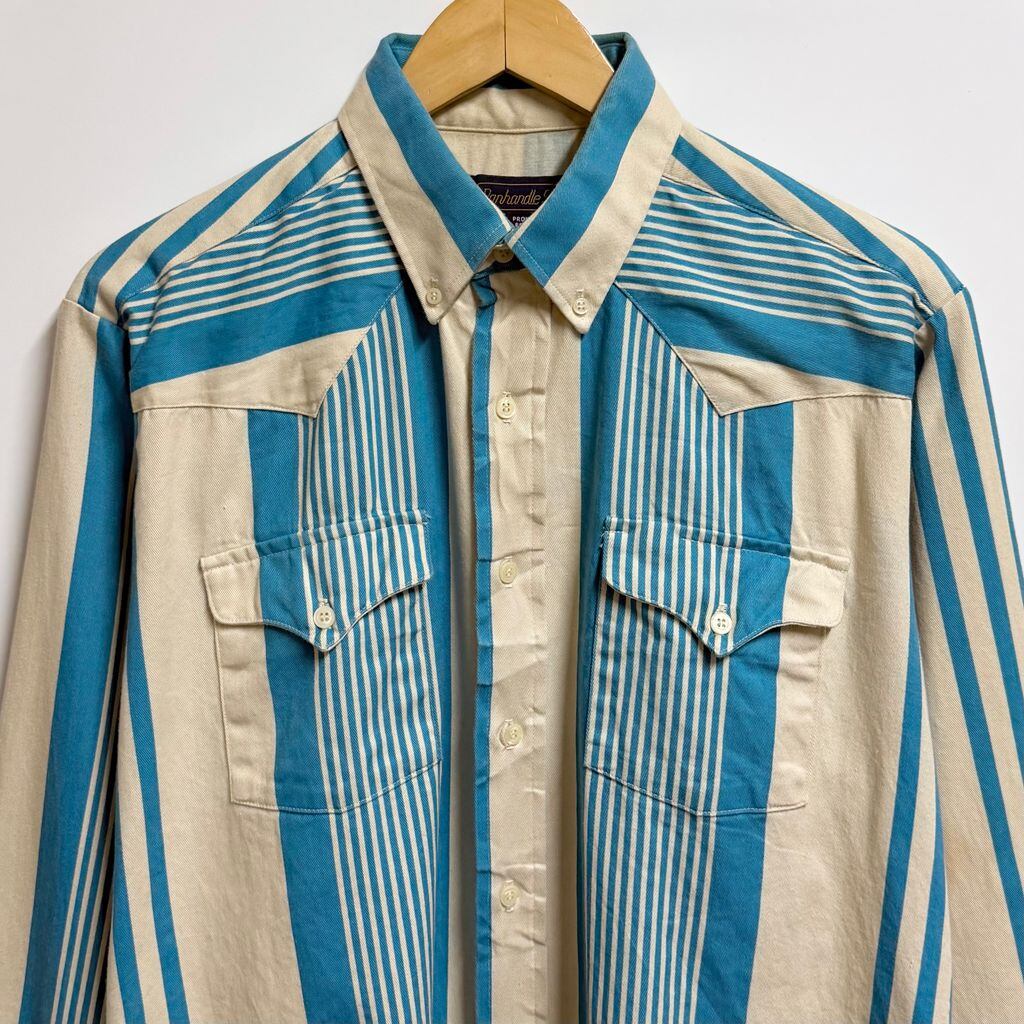 USA製 Panhandle Slim ウエスタンシャツ ボタンダウンシャツ コットンシャツ ストライプ 厚手長袖シャツ アイボリー×水色 No.L753