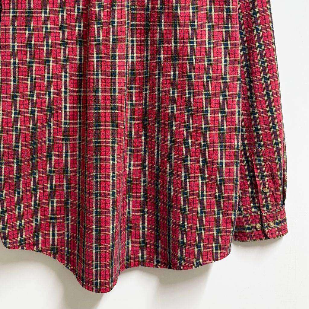 Eddie Bauer エディーバウアー ボタンダウンシャツ コットンシャツ チェック柄 ポケット付き 厚手長袖シャツ 赤×紺×黄色 XLサイズ No.L754