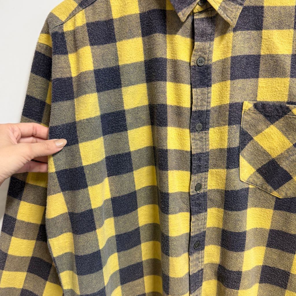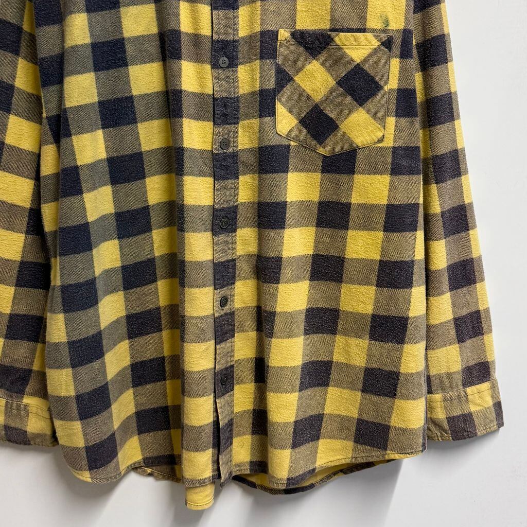SAUGATUCK コットンシャツ チェック柄 ポケット付き 長袖シャツ 黄色×青紫 Lサイズ No.L750