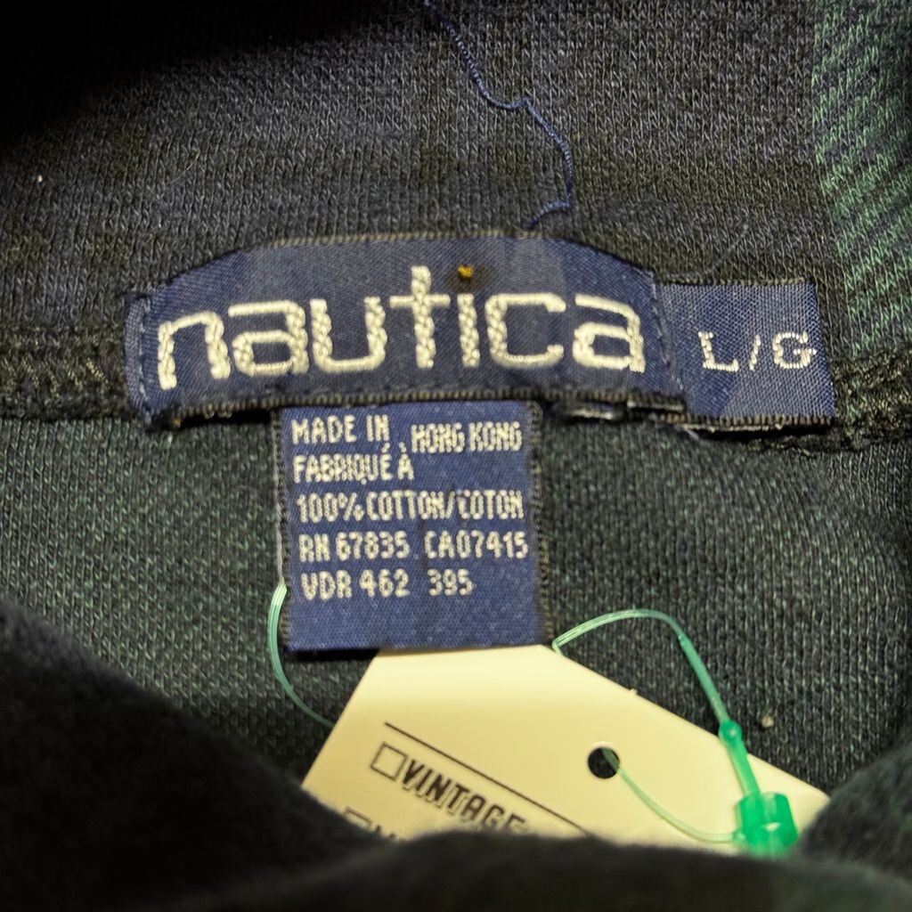 90s nautica ノーティカ チェック柄 タートルネック ハイネック ワンポイント 刺繍ロゴ 紺×緑 Lサイズ No.E999