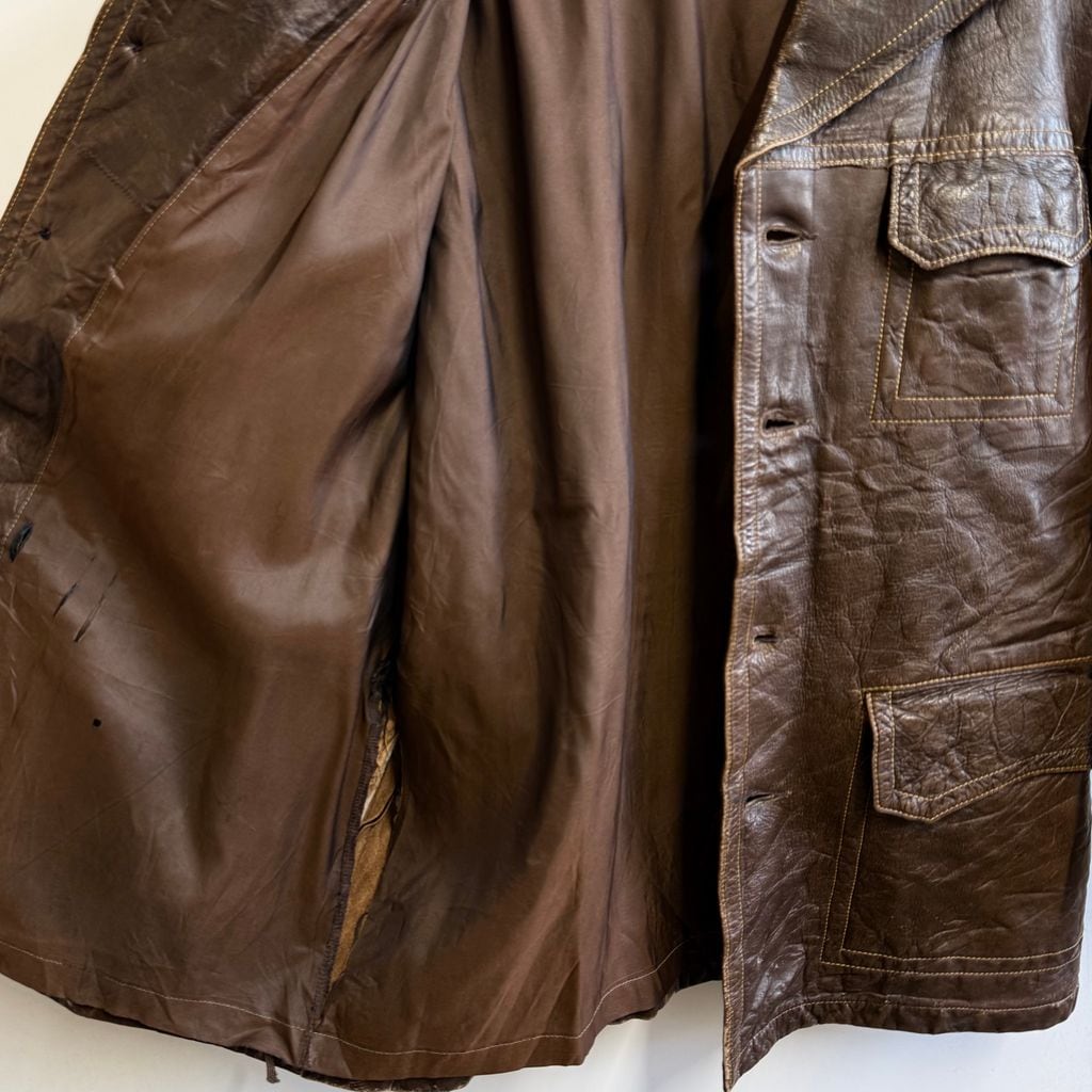 BASKIN ビンテージ vintage レザージャケット ハーフコート ベルト付き エポレット 茶色 ブラウン No.L756