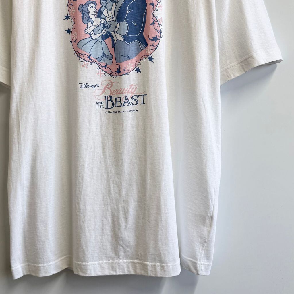 (デッドストック) 90's vintage ビンテージ Disney ディズニー 美女と野獣 ビューティーアンドビースト 半袖Tシャツ 白 FREE SIZE No.L766