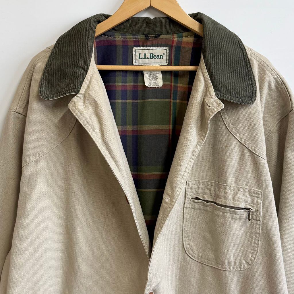 L.L.Bean エルエルビーン コットンジャケット ハンティングジャケット フィールドジャケット 裏地チェック柄 襟コーデュロイ ベージュ XLサイズ No.L781
