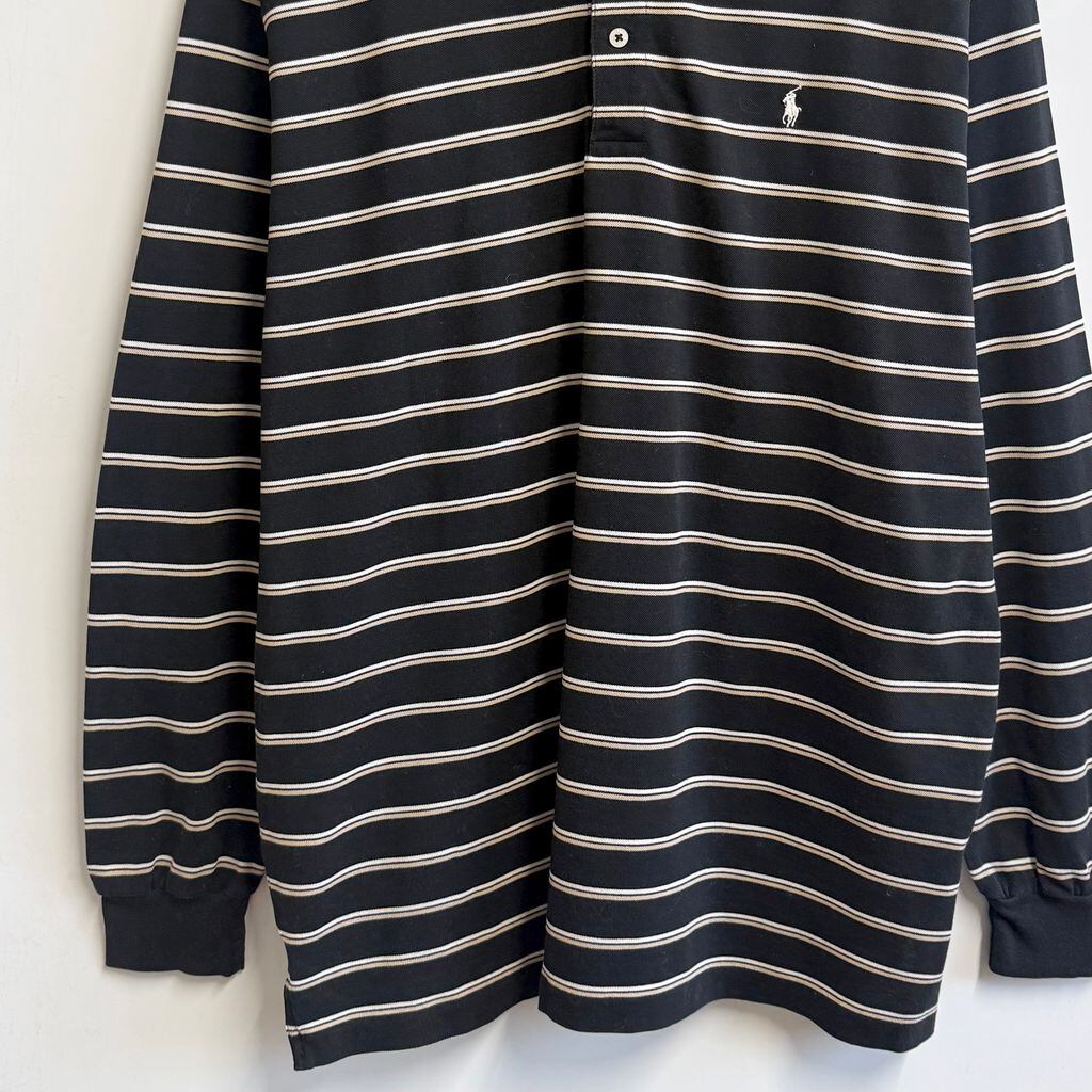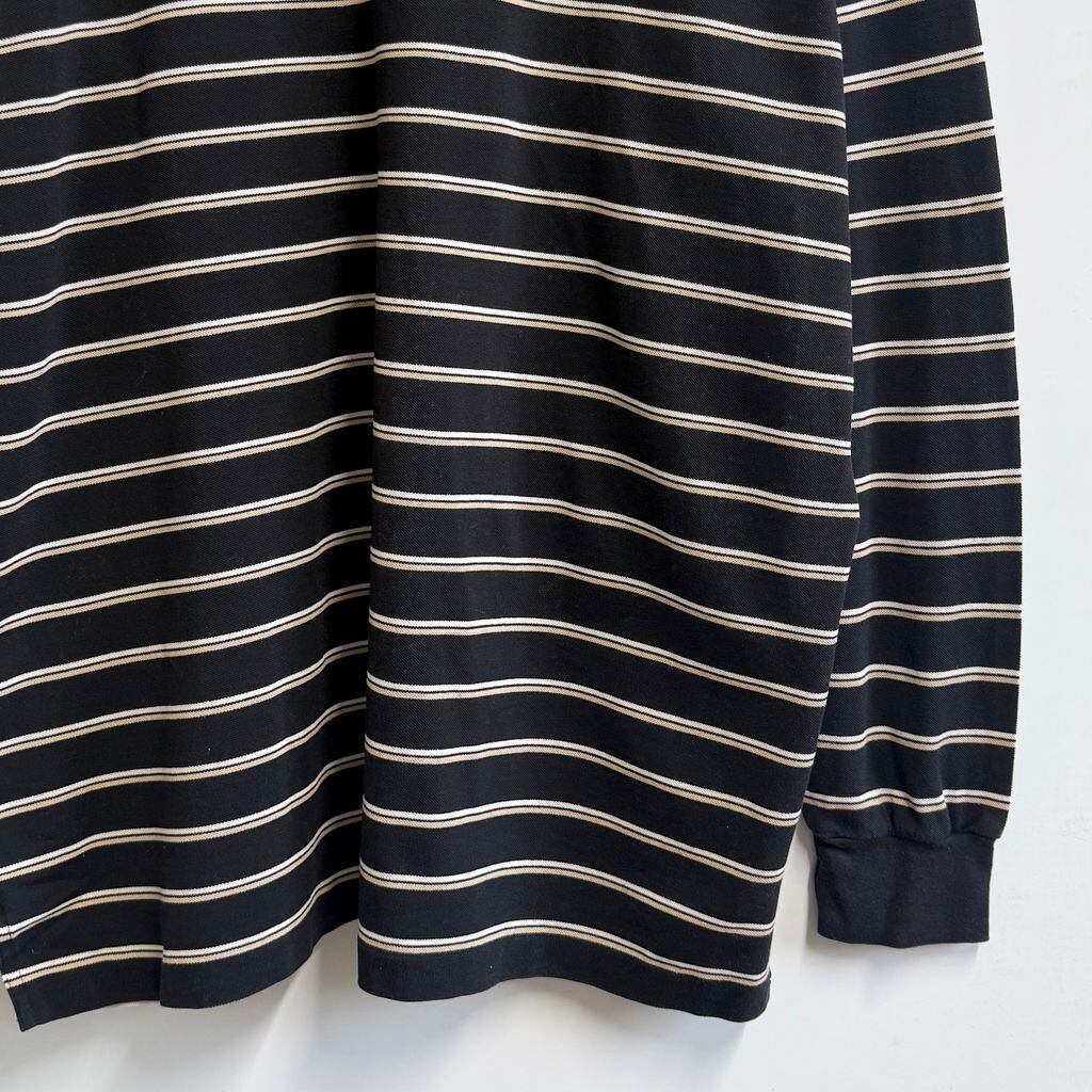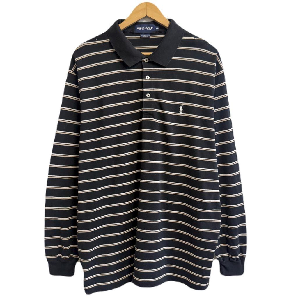 POLO GOLF ポロゴルフ ポロシャツ 長袖 ボーダー ワンポイントロゴ 刺繍 黒×白×ベージュ XLサイズ No.L798
