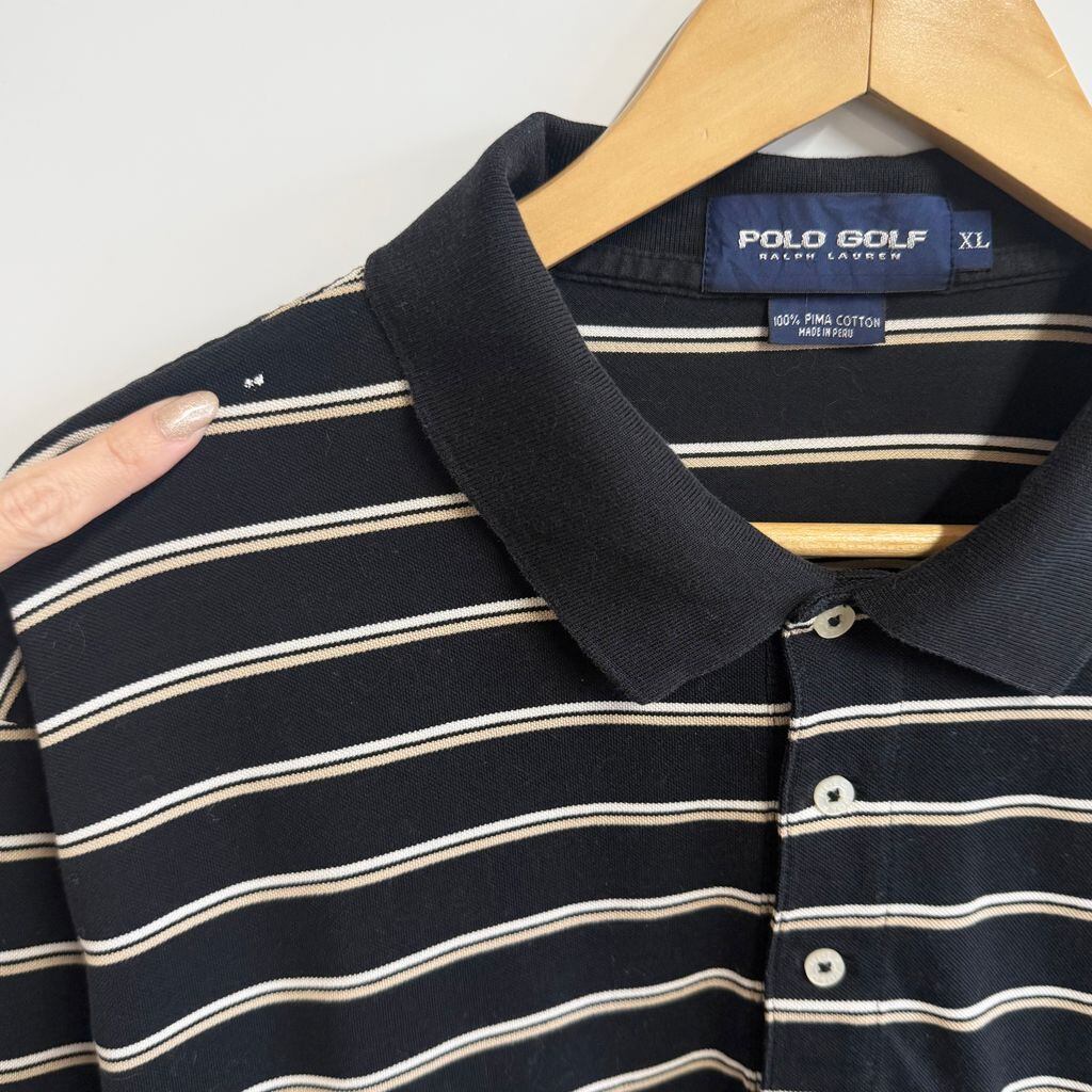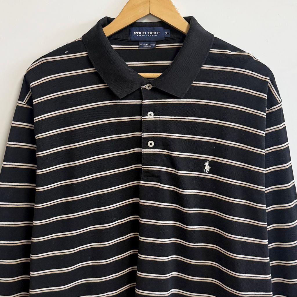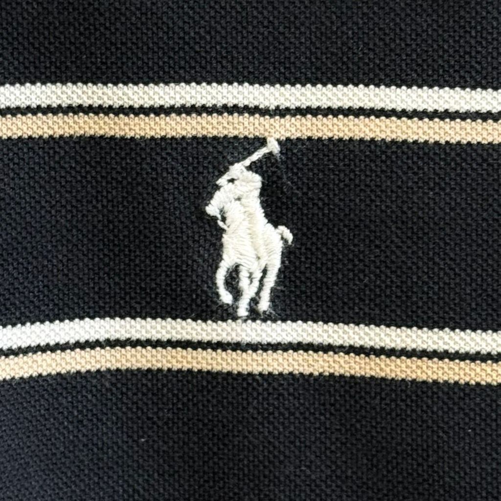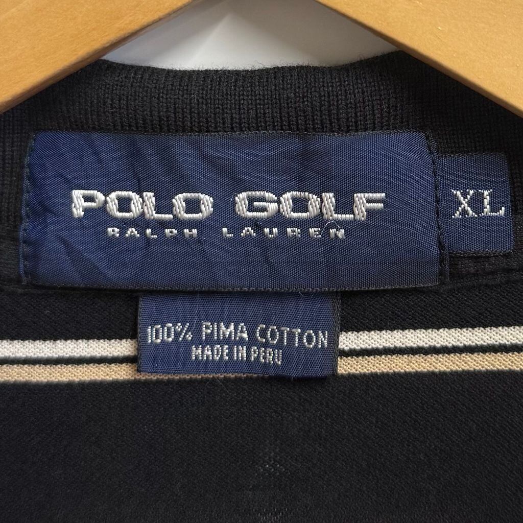 POLO GOLF ポロゴルフ ポロシャツ 長袖 ボーダー ワンポイントロゴ 刺繍 黒×白×ベージュ XLサイズ No.L798
