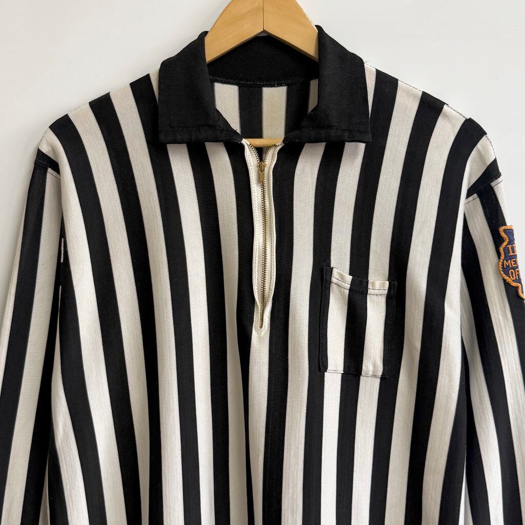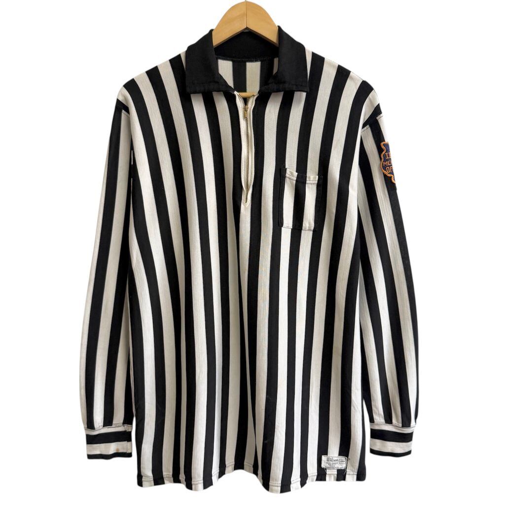 60's USA製 vintage ビンテージ Wilson ウィルソン TALON タロンジップ レフェリーシャツ プルオーバー ストライプ 黒×白 Lサイズ No.L799