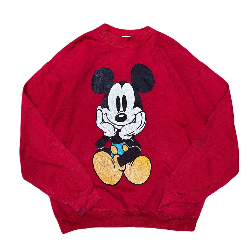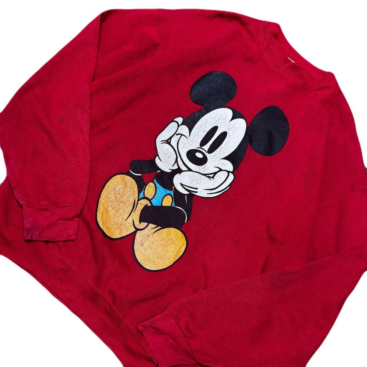 90s mickey&co. ミッキーマウス ミッキー 両面プリント ラグランスウェット トレーナー 赤 No.EA09