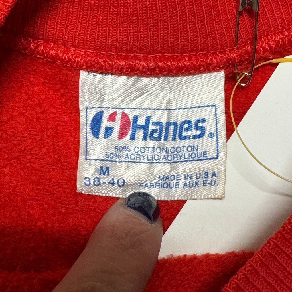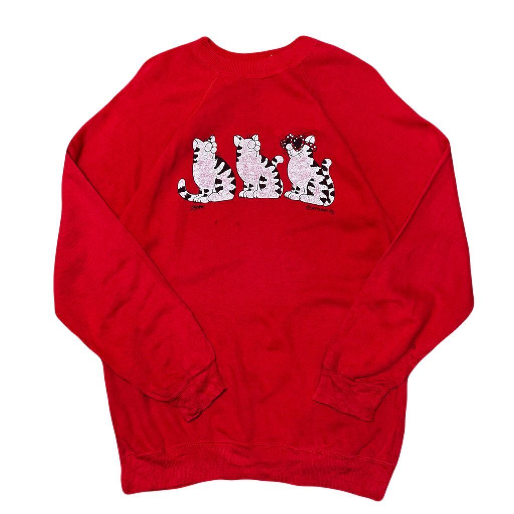 80s USA製 Hanes Jim Benton 猫 ラグランスウェット トレーナー 赤 Mサイズ No.EA10