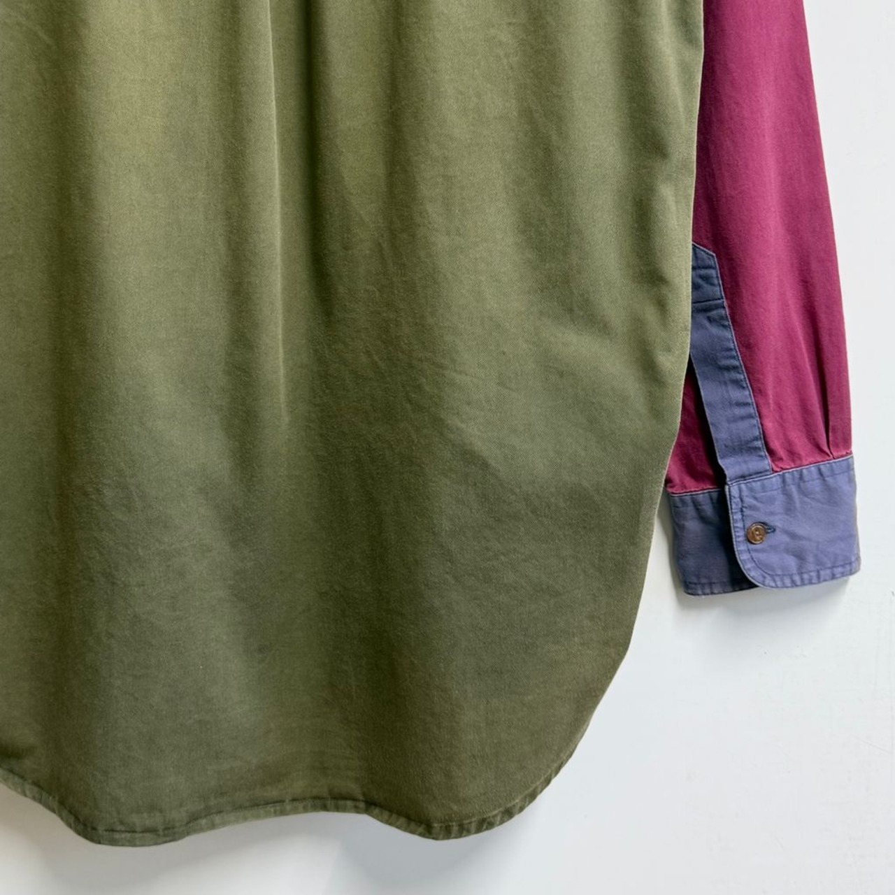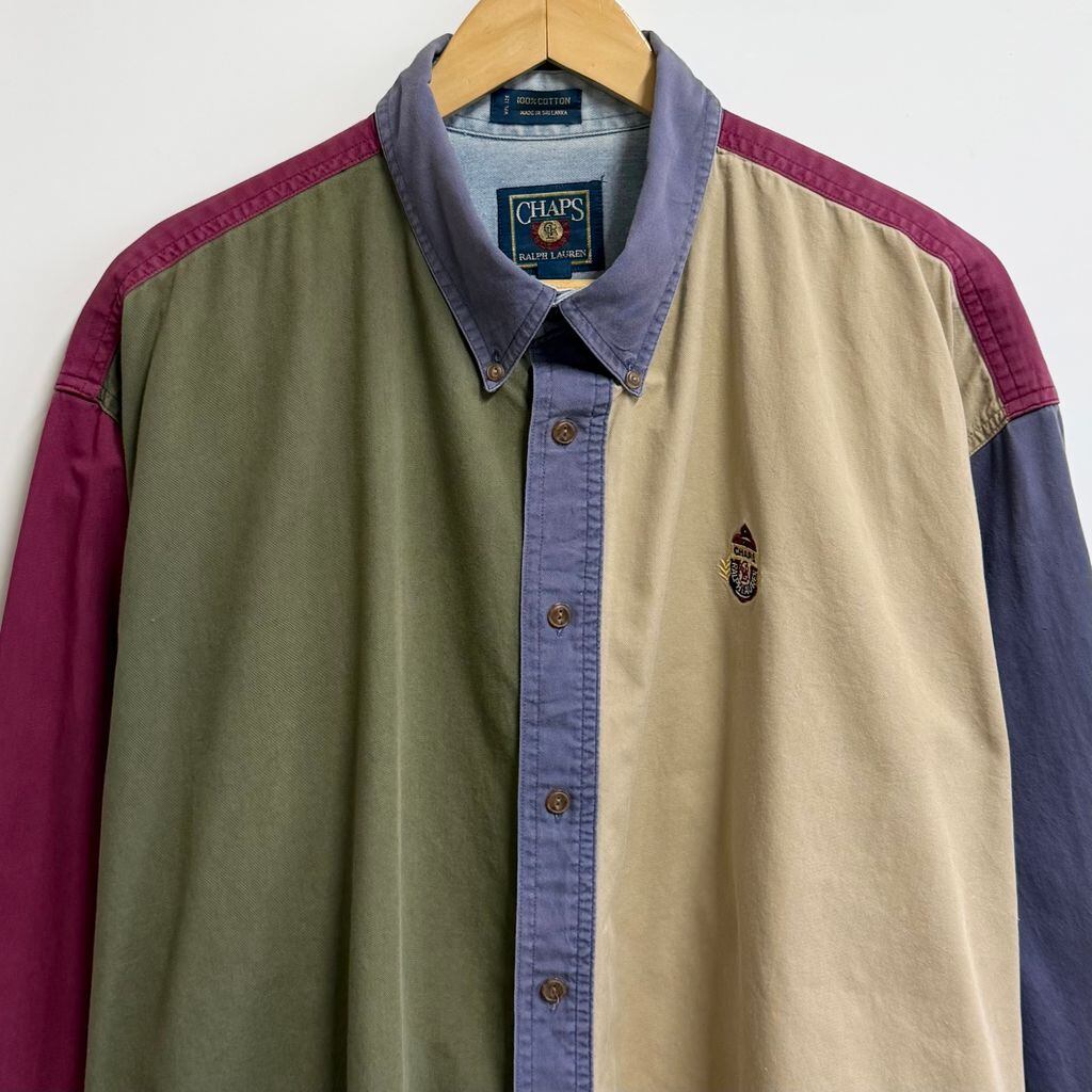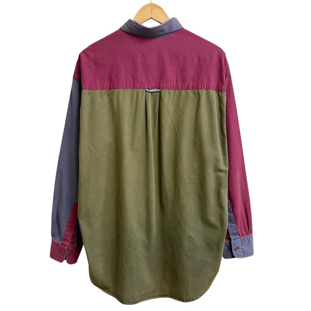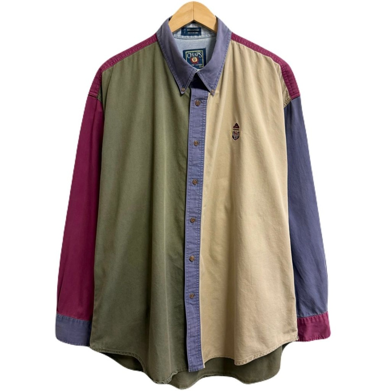 CHAPS チャップス RALPH LAUREN ラルフローレン カラーブロックデザイン ボタンダウンシャツ コットンシャツ 長袖シャツ ワンポイントロゴ 刺繍 ワインレッド×カーキ×パープル×ベージュ XLサイズ No.L802
