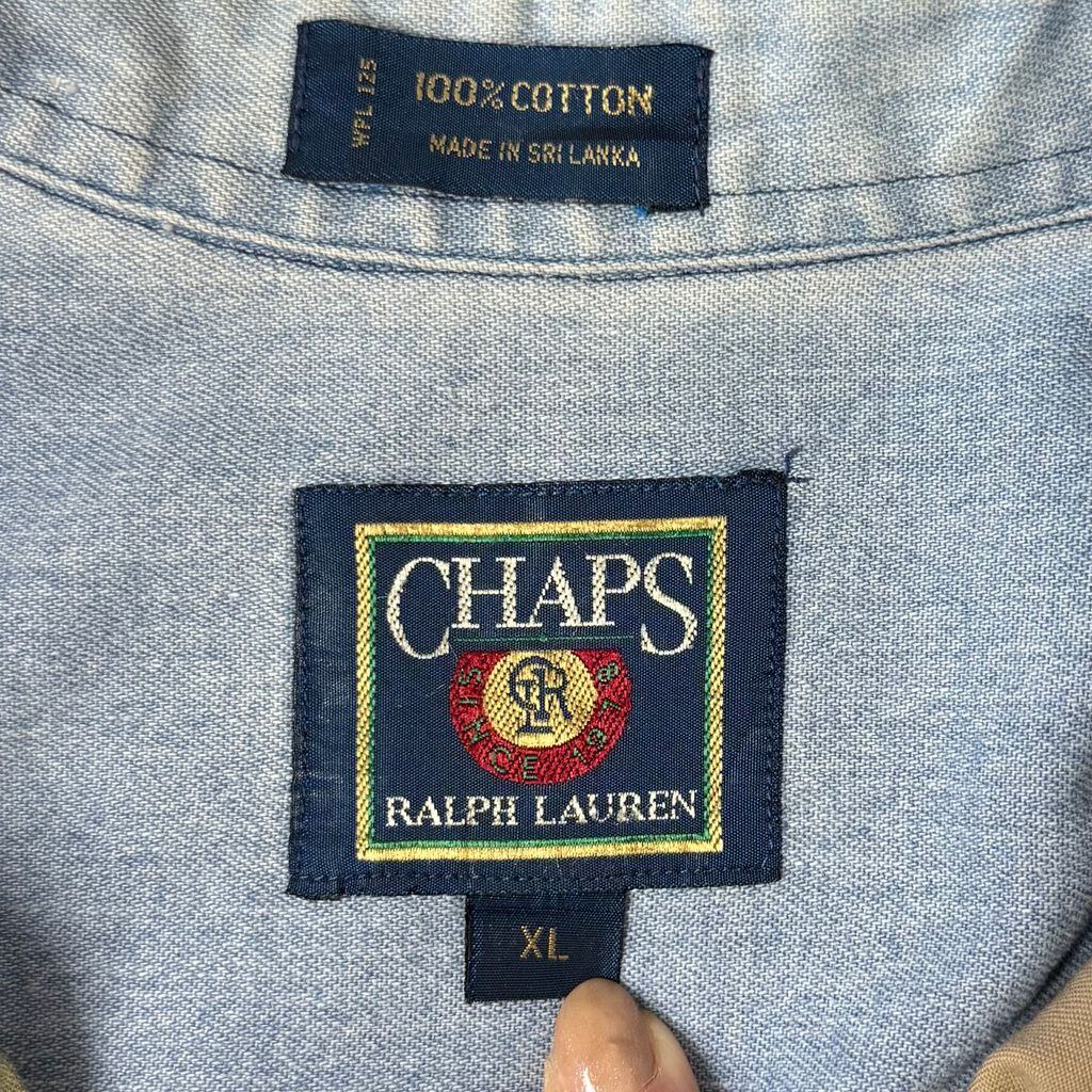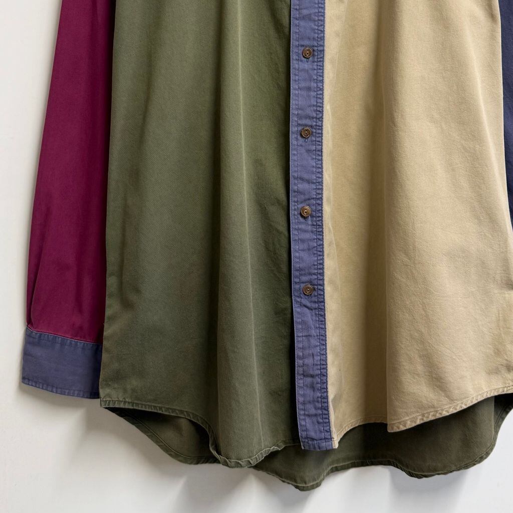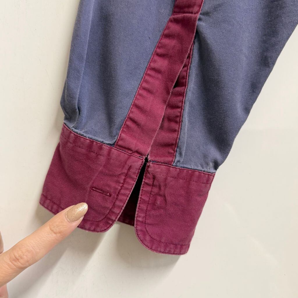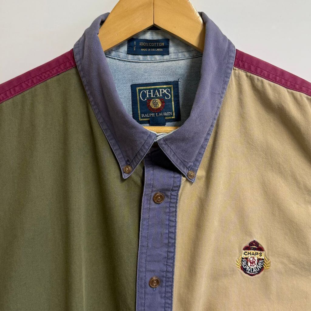 CHAPS チャップス RALPH LAUREN ラルフローレン カラーブロックデザイン ボタンダウンシャツ コットンシャツ 長袖シャツ ワンポイントロゴ 刺繍 ワインレッド×カーキ×パープル×ベージュ XLサイズ No.L802