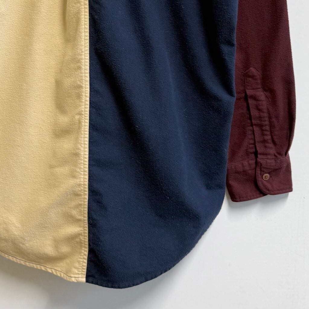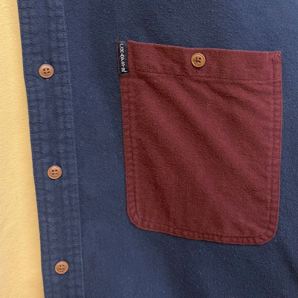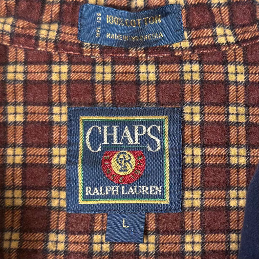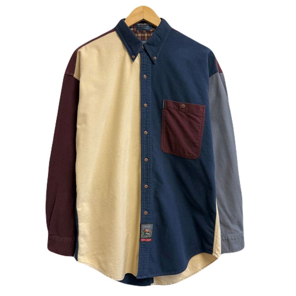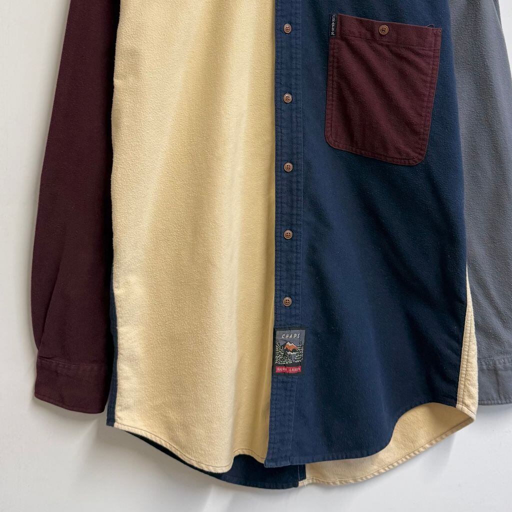 CHAPS チャップス RALPH LAUREN ラルフローレン カラーブロックデザイン ボタンダウンシャツ コットンシャツ ポケット付き 厚手長袖シャツ ネルシャツ バーガンディ×クリーム色×ネイビー×グレー Lサイズ No.L803