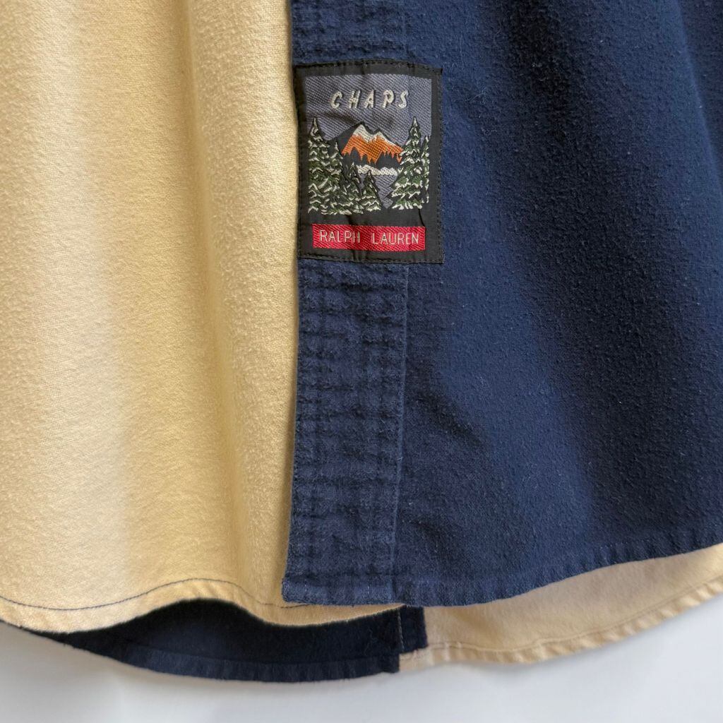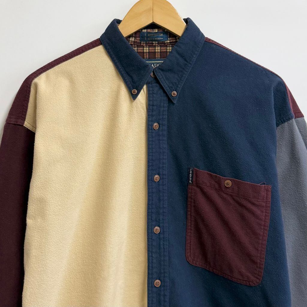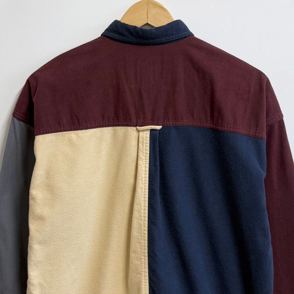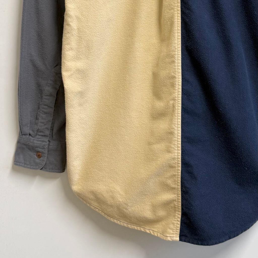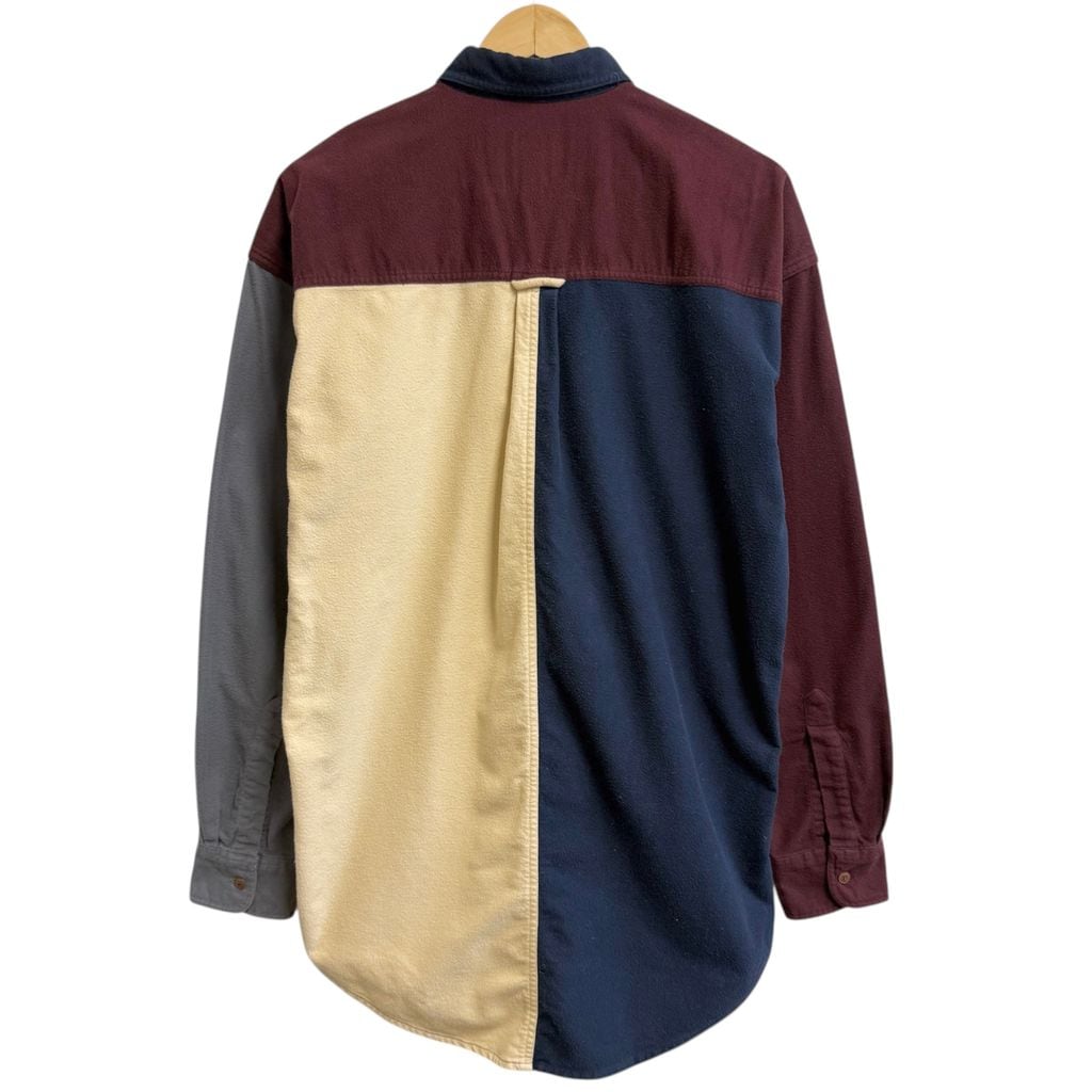 CHAPS チャップス RALPH LAUREN ラルフローレン カラーブロックデザイン ボタンダウンシャツ コットンシャツ ポケット付き 厚手長袖シャツ ネルシャツ バーガンディ×クリーム色×ネイビー×グレー Lサイズ No.L803
