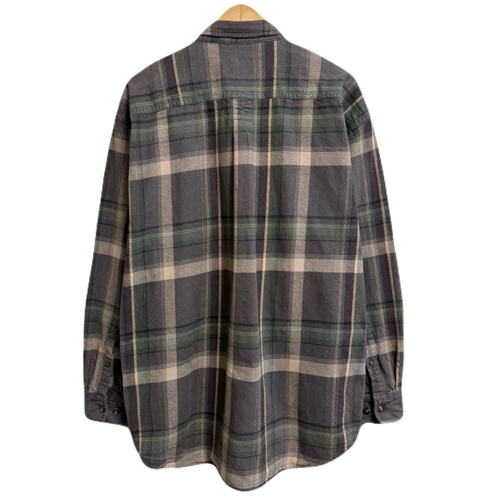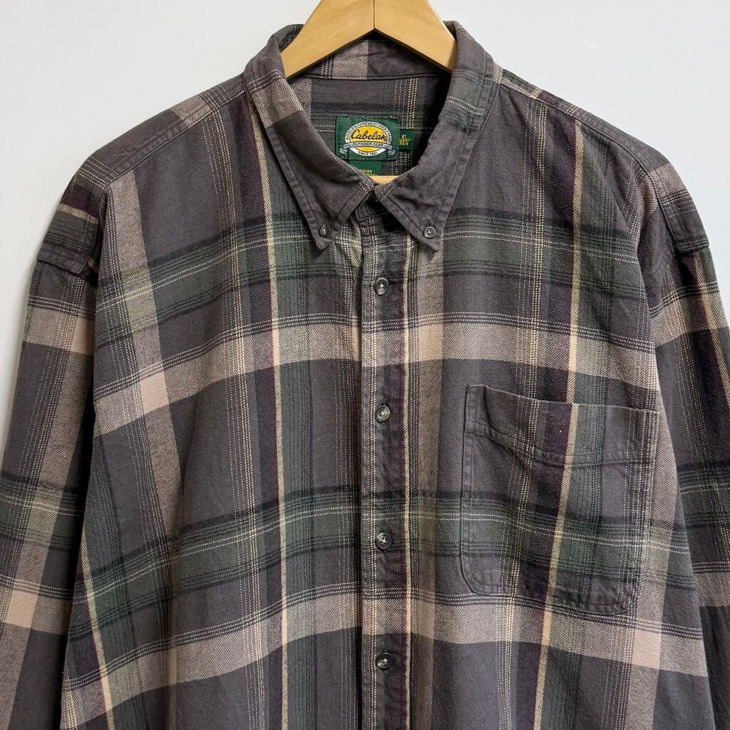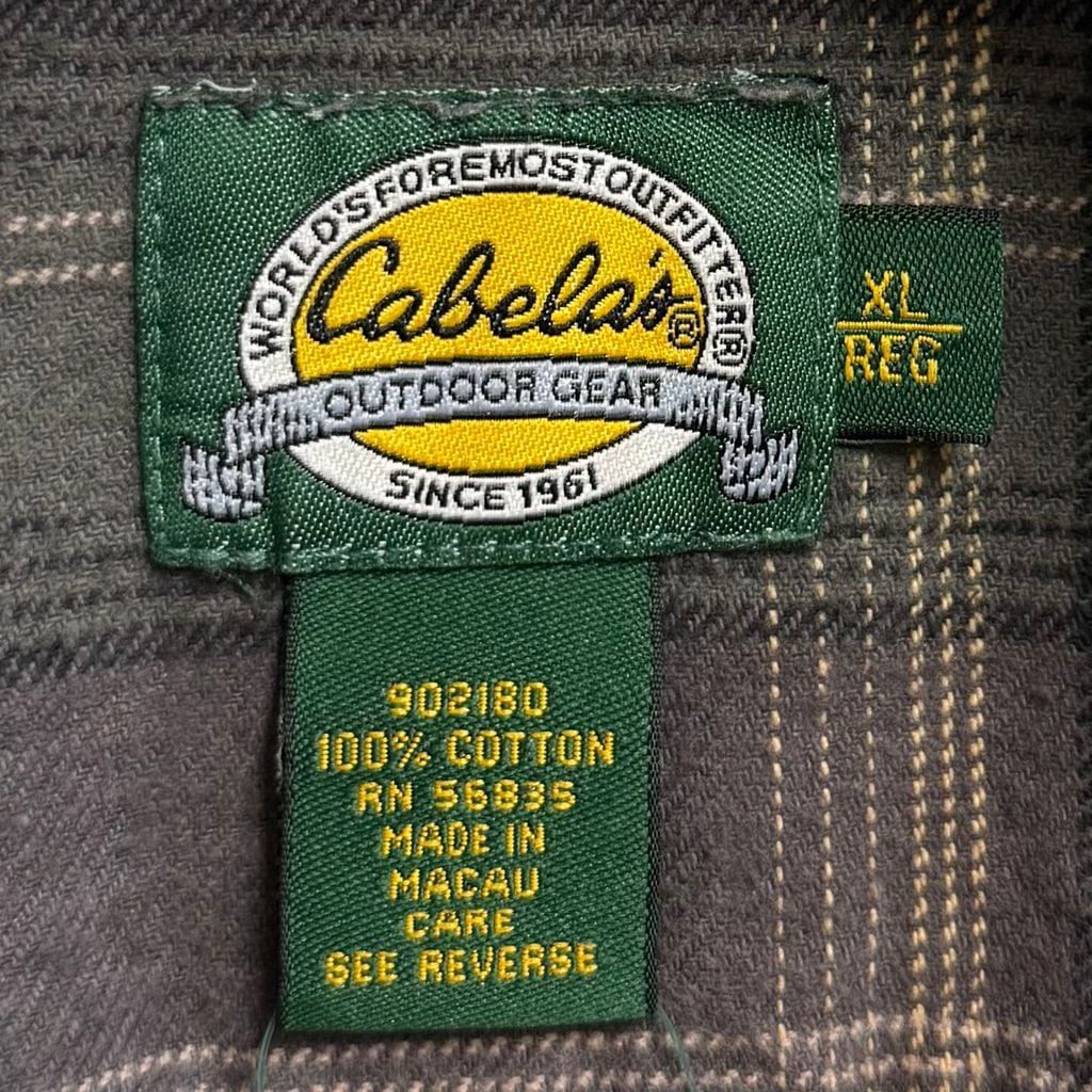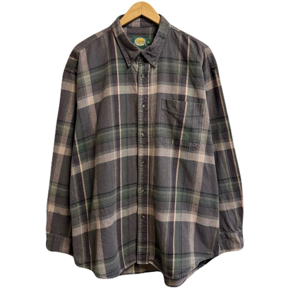 Cabela's カベラス ボタンダウンシャツ コットンシャツ チェック柄 ポケット付き 厚手長袖シャツ グレー×ピンクベージュ×オリーブグリーン×多色 XLサイズ No.L804