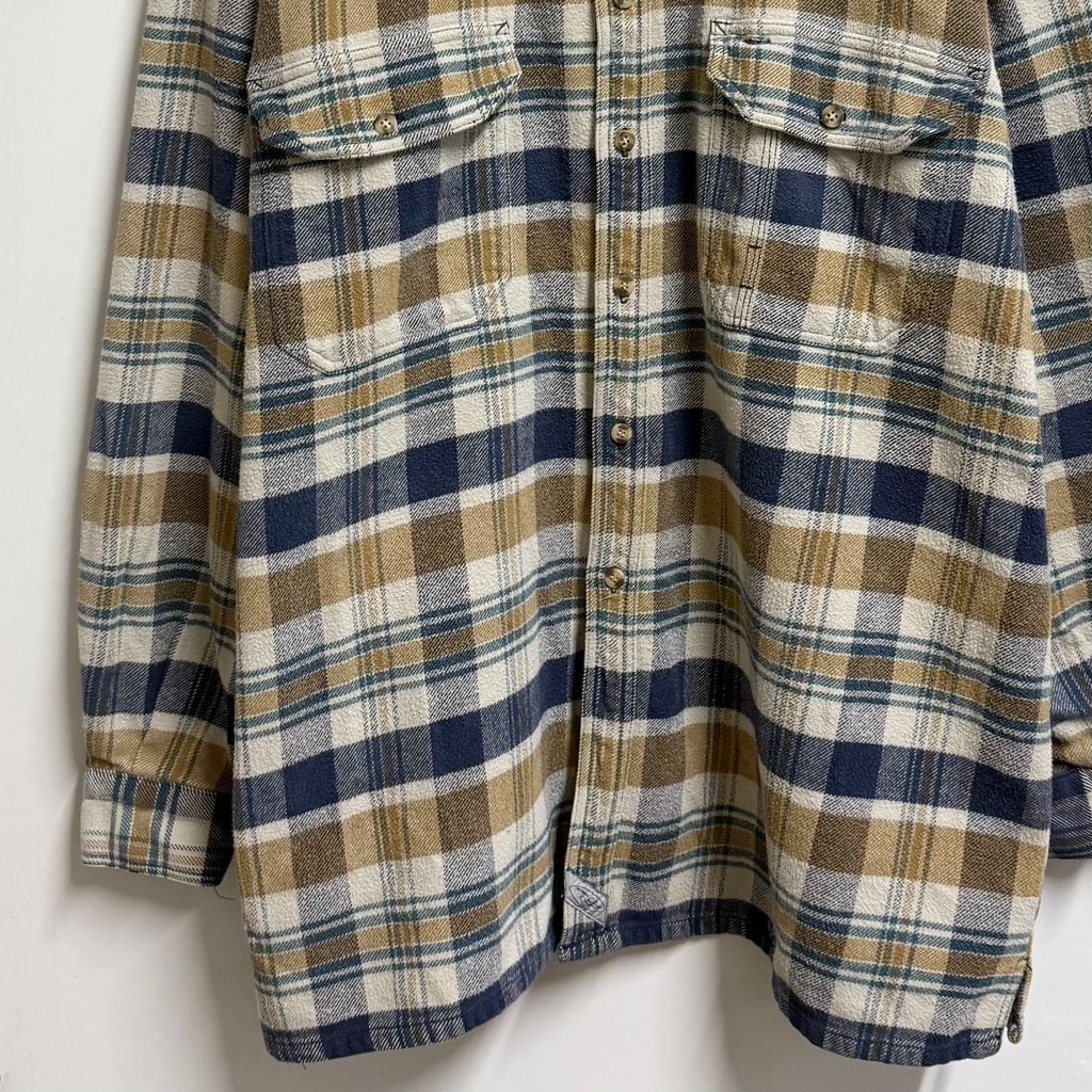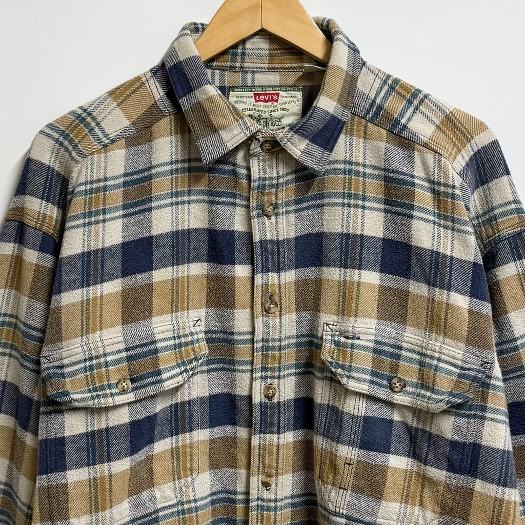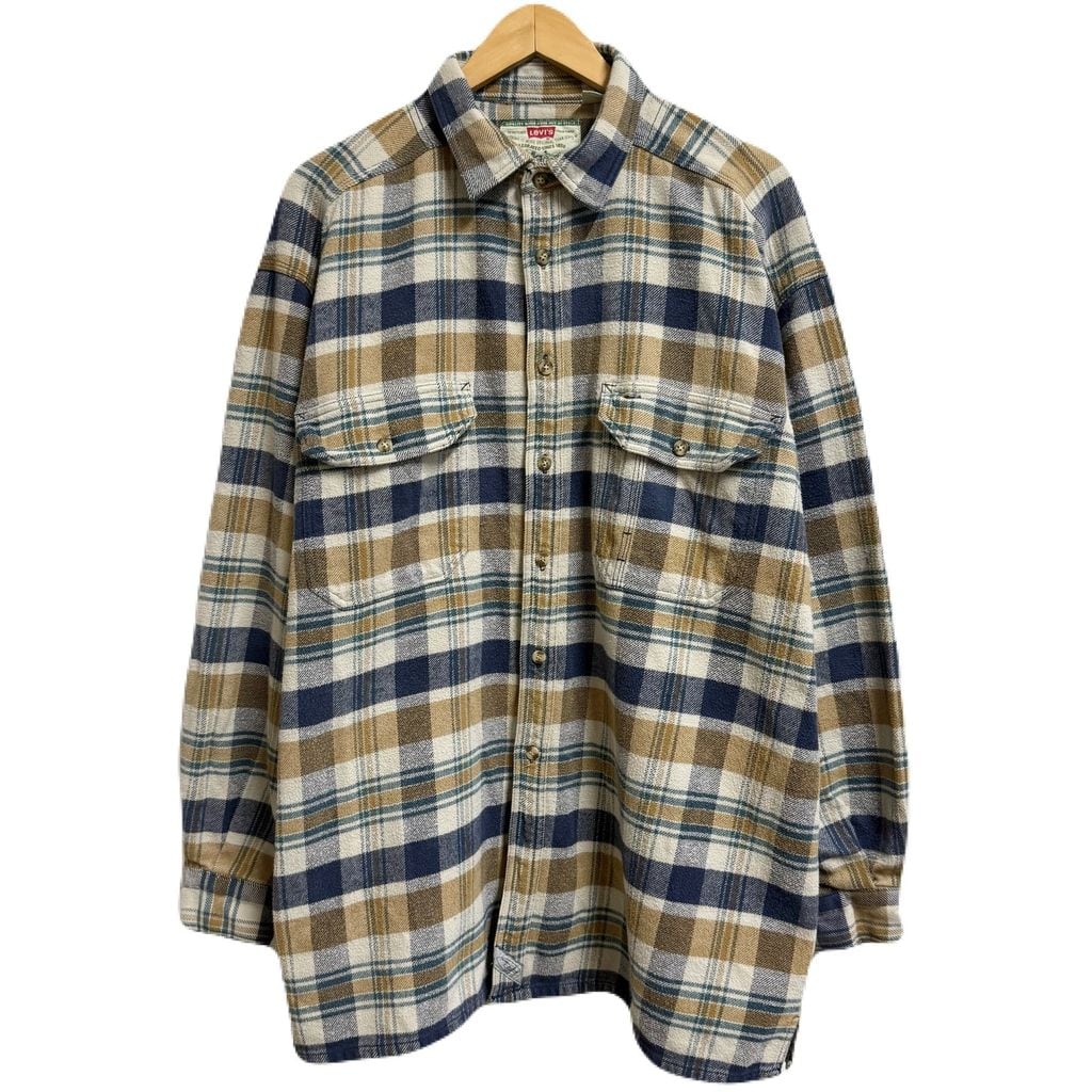 Levi's リーバイス コットンシャツ チェック柄 ポケット付き 厚手長袖シャツ 青×ベージュ×オフホワイト×グリーン XLサイズ No.L805