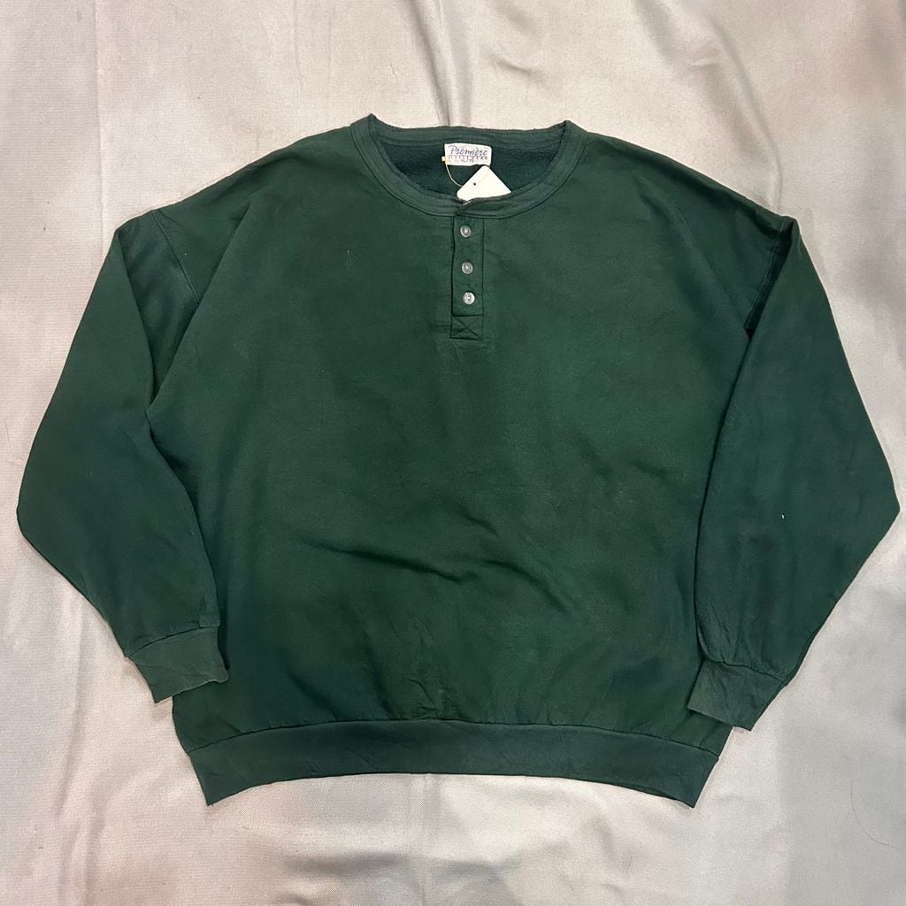 unknown ヘンリーネックシャツ 裏地ボア 長袖 グリーン green 3ボタン SIZE XL No.T183