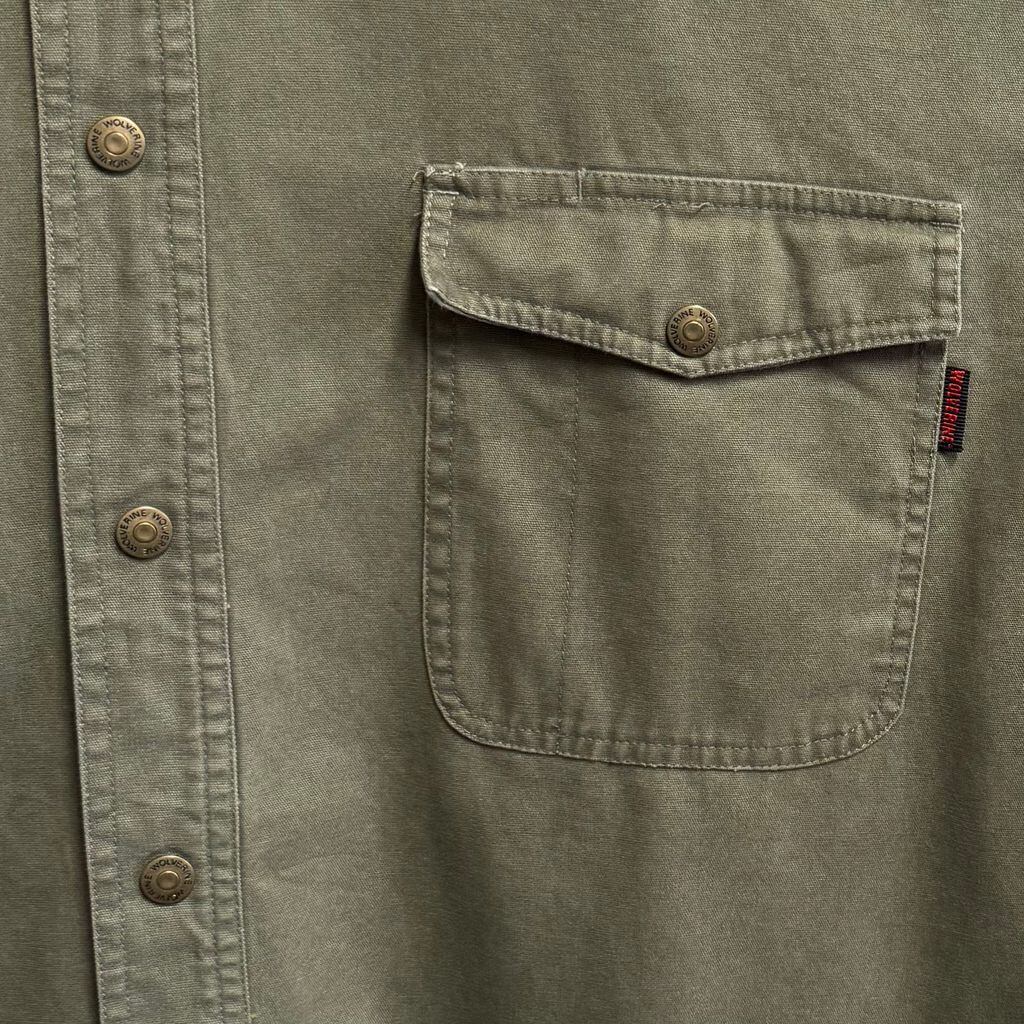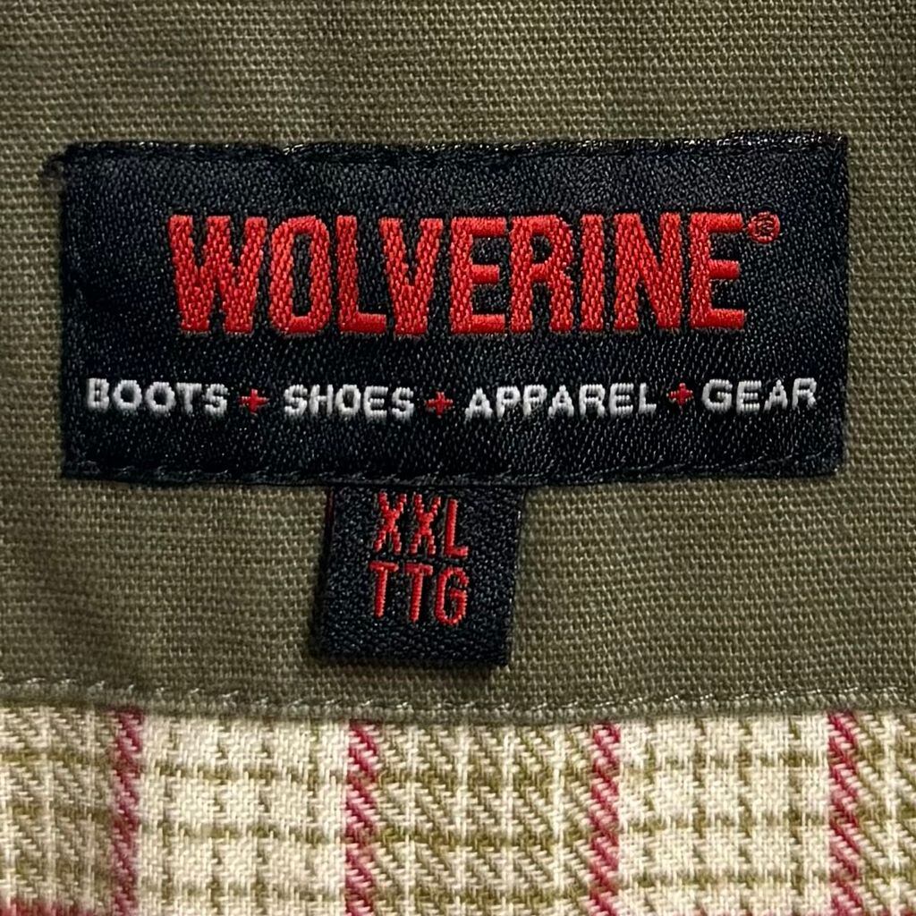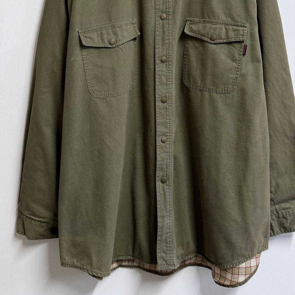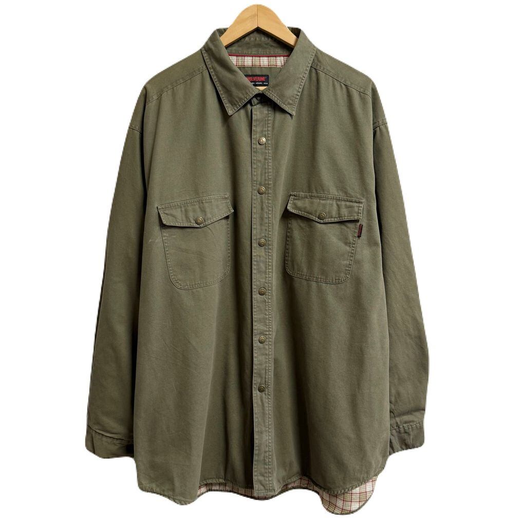 WOLVERINE コットンシャツ 無地 ポケット付き 厚手長袖シャツ ワークシャツ 裏地チェック柄 スナップボタン カーキ XXLサイズ No.L811