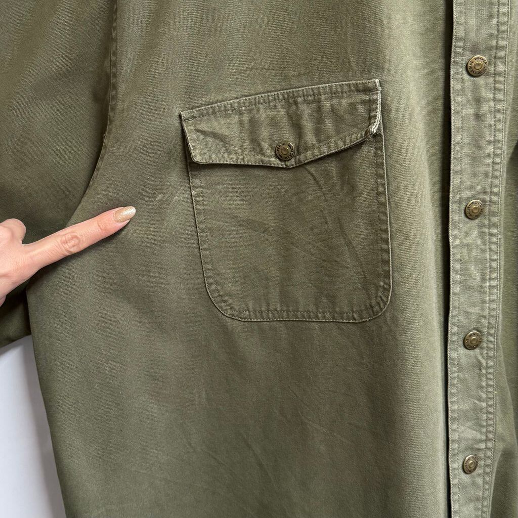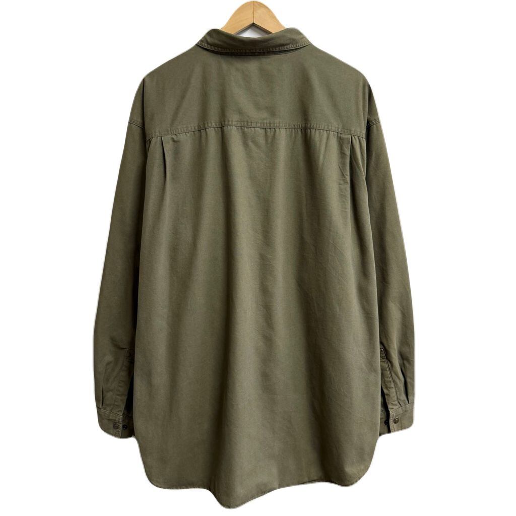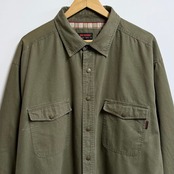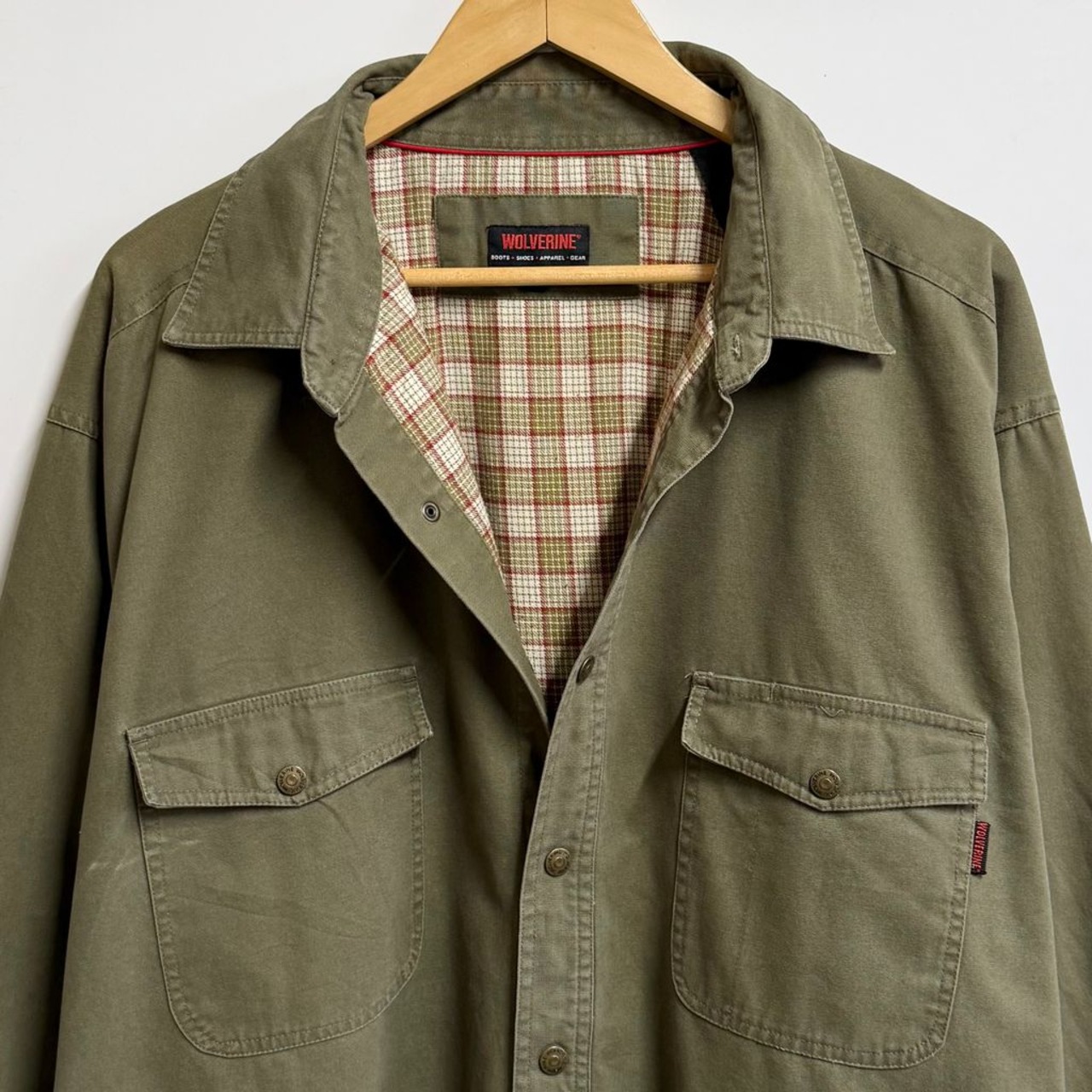 WOLVERINE コットンシャツ 無地 ポケット付き 厚手長袖シャツ ワークシャツ 裏地チェック柄 スナップボタン カーキ XXLサイズ No.L811