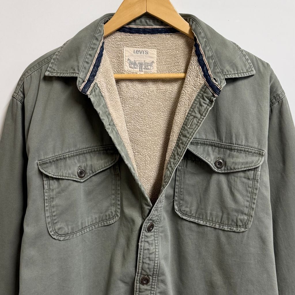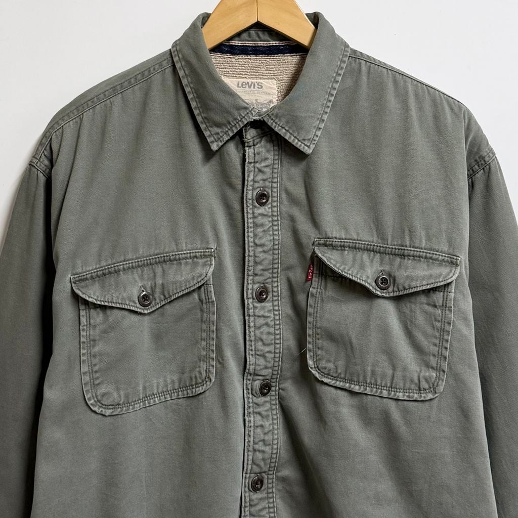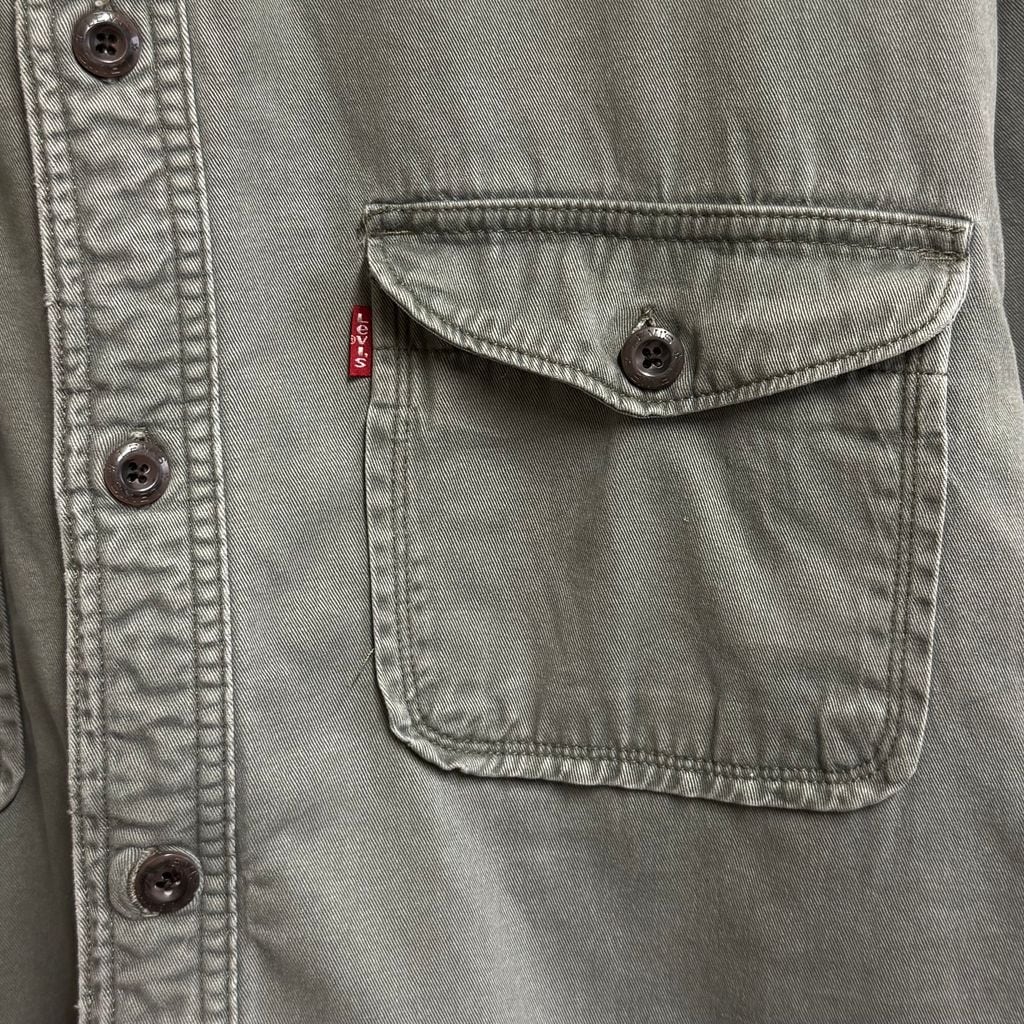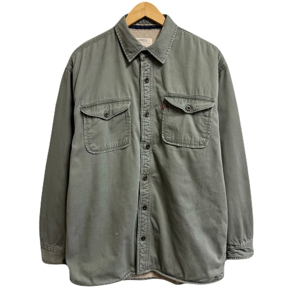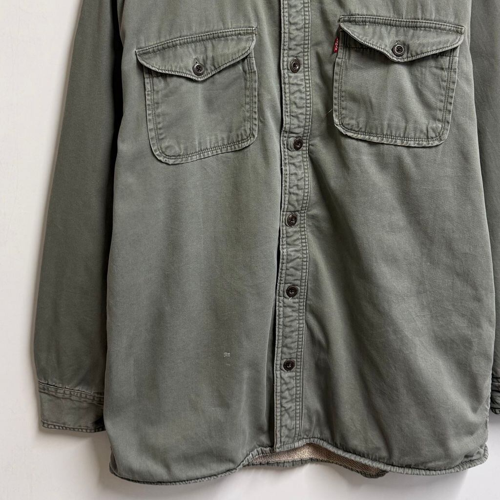 Levi's リーバイス 裏ボアシャツジャケット ワークシャツ コットンシャツ 無地 ポケット付き 厚手長袖シャツ オリーブグリーン Lサイズ No.L813