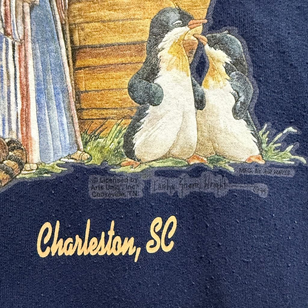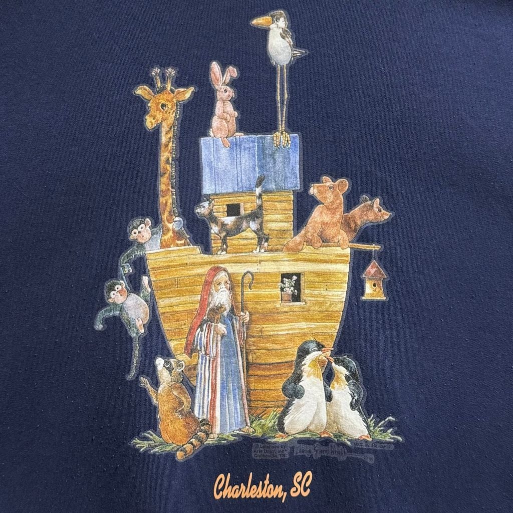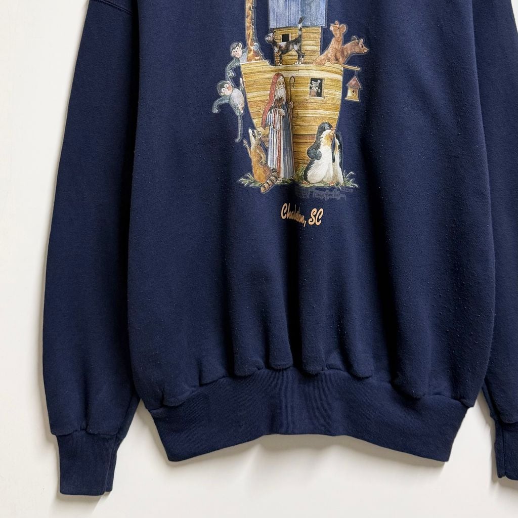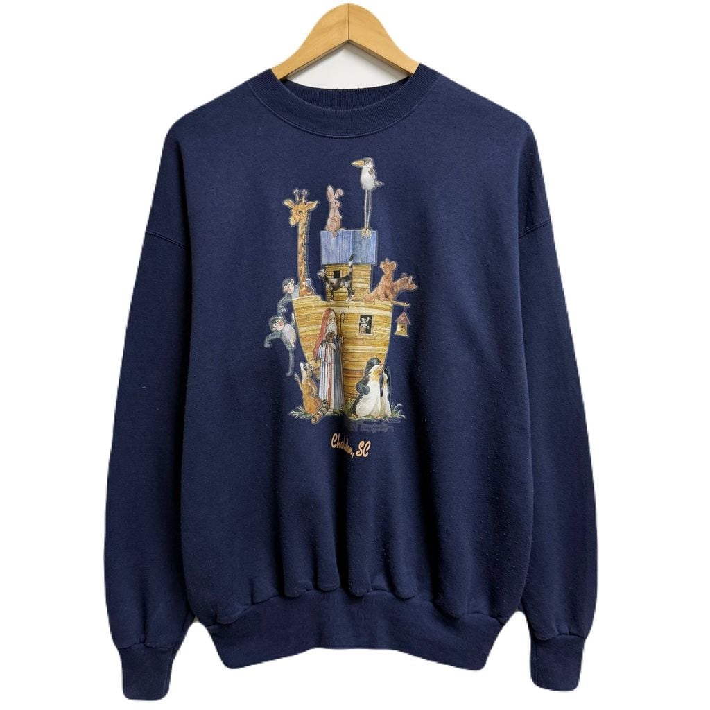 Hanes ヘインズ フロントプリント ノアの箱舟 アニマルプリント トレーナー スウェット 裏起毛 紺 ネイビー Lサイズ No.L829