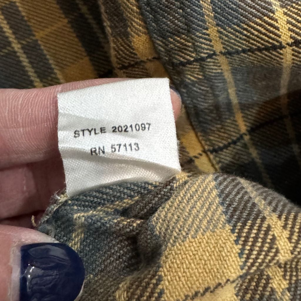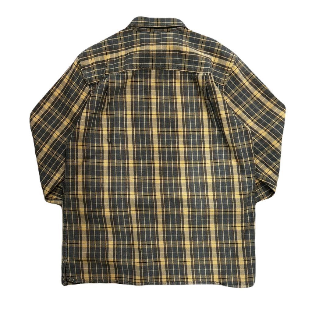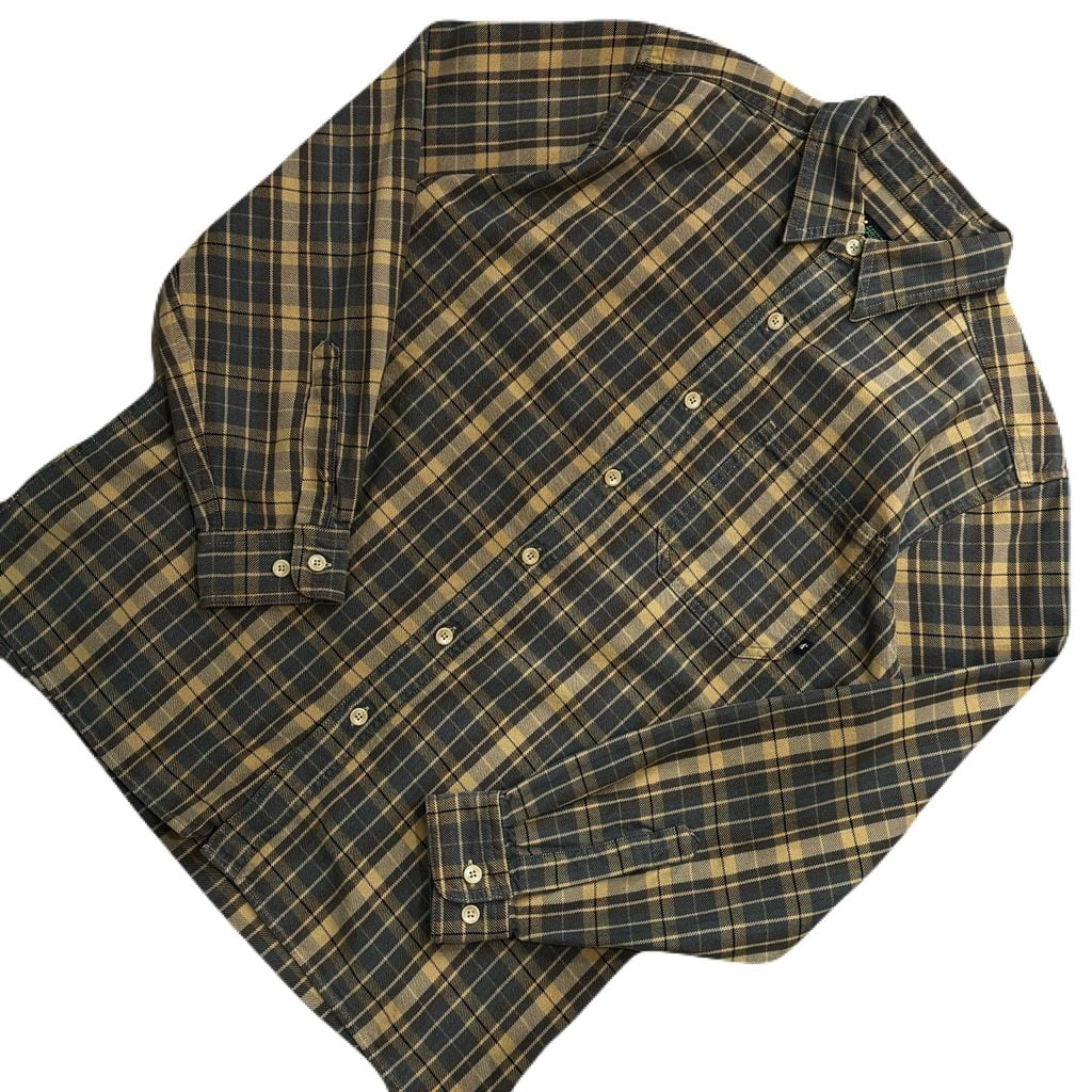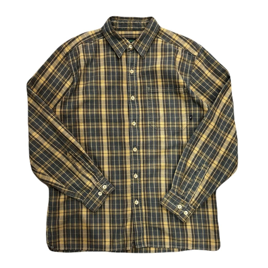 EASTERN MOUNTAIN SPORTS ポケット付き チェック柄 長袖シャツ ネルシャツ マスタード×ブラウン Mサイズ No.EA13